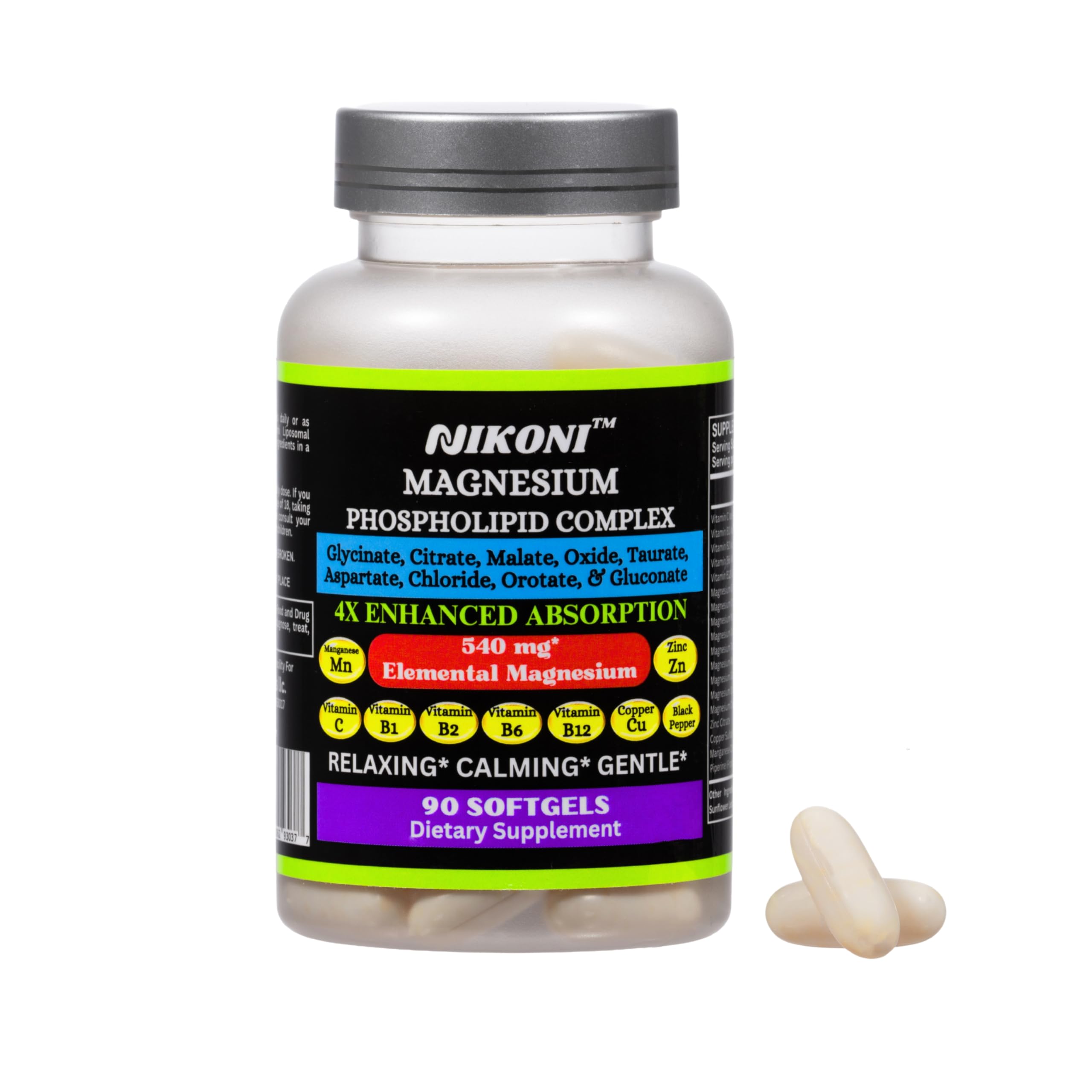 Nikoni Phospholipid Magnesium Complex 2500mg (9 Magnesium Salts, 5 Vitamins & 3 Minerals) (90 Softgels)