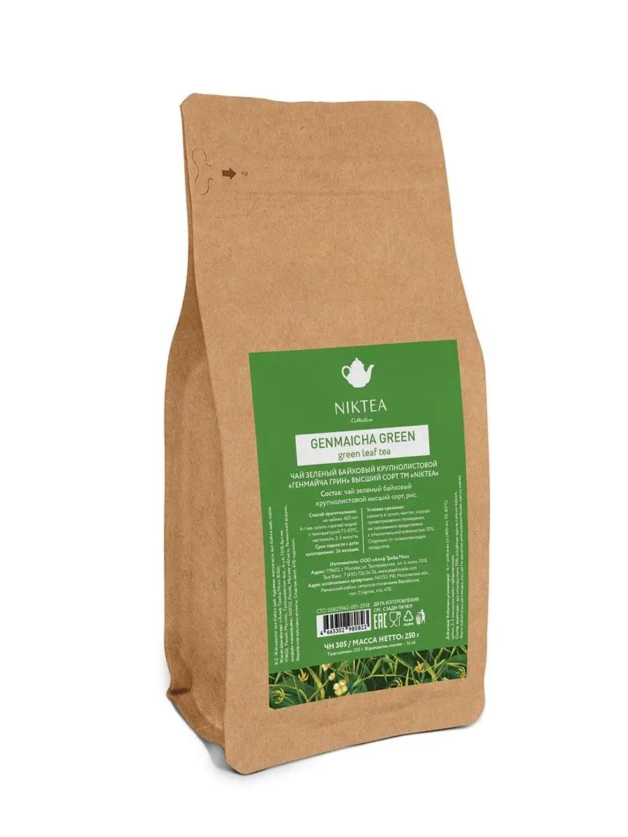 NIKTEA Чай зеленый Genmaicha Green/Генмайча Грин, 250г