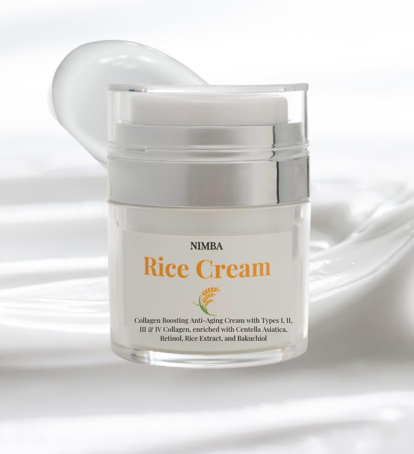 Nimba Collagen Boosting Rice Cream: Anti-Aging Face Moisturizer with Rice Extract Vitamin C & E Hydrating & Non-Greasy Formula for Soft Smooth Skin Clean Daily Skincare