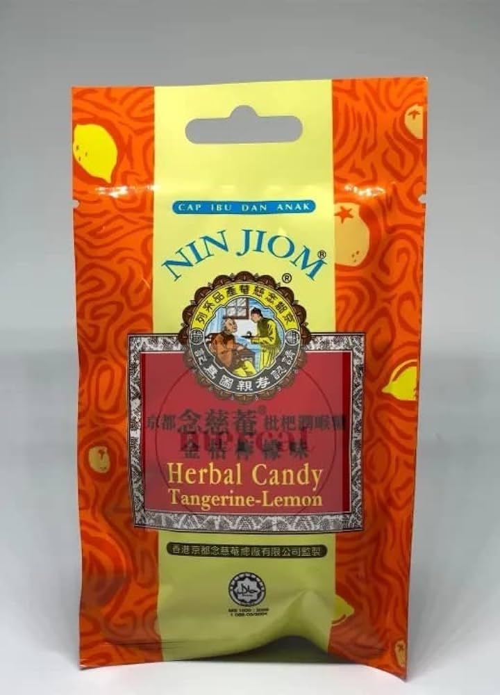NIN JIOM Herbal Candy Tangerine-Lemon 20g Made in Hong Kong MalaysiaNIN JIOM Herbal Candy Tangerine-Lemon 20g Made in Hong Kong Malaysia.