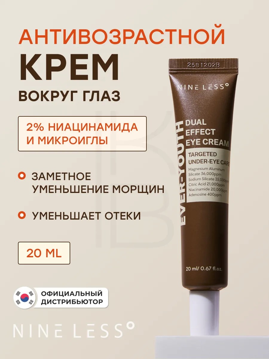 Антивозрастной крем для век Ever-Youth Dual Effect Eye Cream от NINE LESS — профессиональное средство корейской косметики для ухода за областью вокруг глаз. Разработан для борьбы с морщинами, темными кругами и пигментацией, обеспечивает выраженный лифтинг-эффект и заметный результат уже после первого применения.