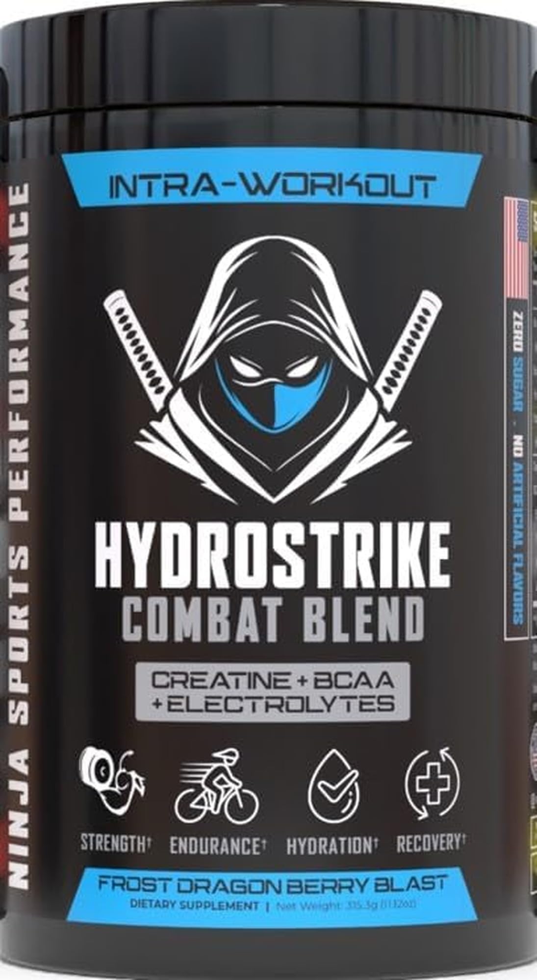 Ninja Sports Performance HydroStrike Combat Blend 5g BCAAs 5g Creatine Monohydrate Powerful Blend of Electrolytes Zero Sugar