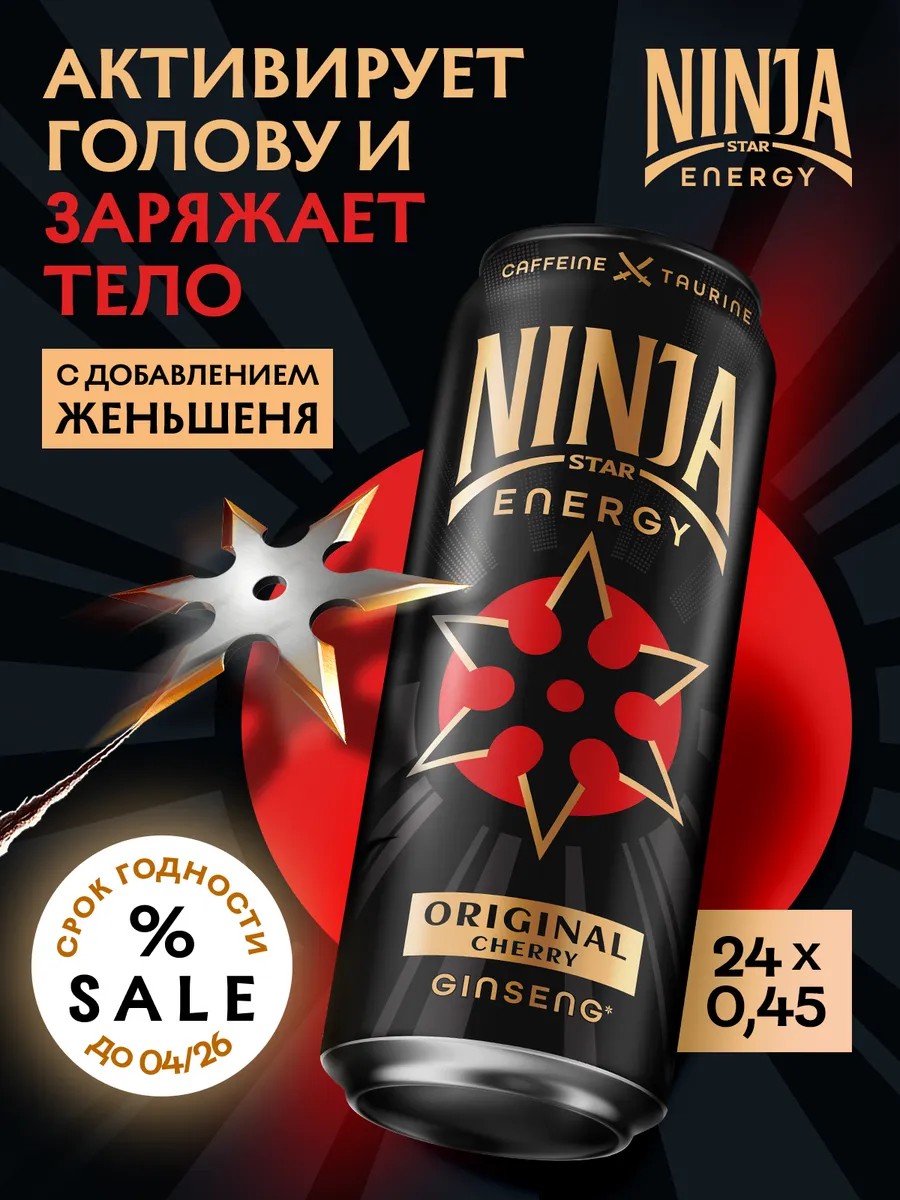 Ninja Star активирует мозг и заряжает тело, благодаря уникальной формуле женьшеня, кофеина и таурина.