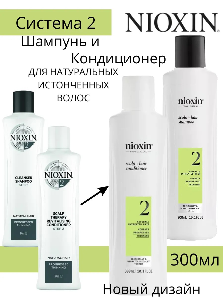| Комплектация | Nioxin Набор шампунь+кондиционер, Система № 2, 300 мл+ 300 мл-1шт |