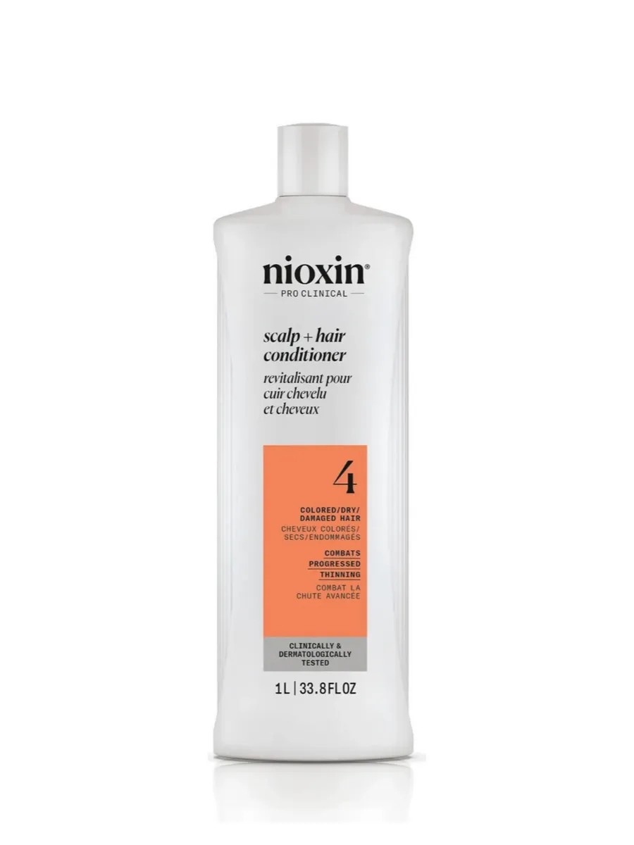 Nioxin System 4 Hair and Scalp Conditioner is specially formulated for color-treated, dry, damaged, and noticeably thinning hair.