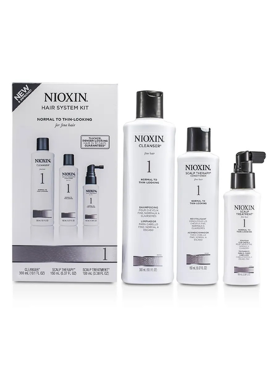 NIOXIN System 1 for fine hair is designed specifically for hair prone to thinning, hair loss, and breakage.
