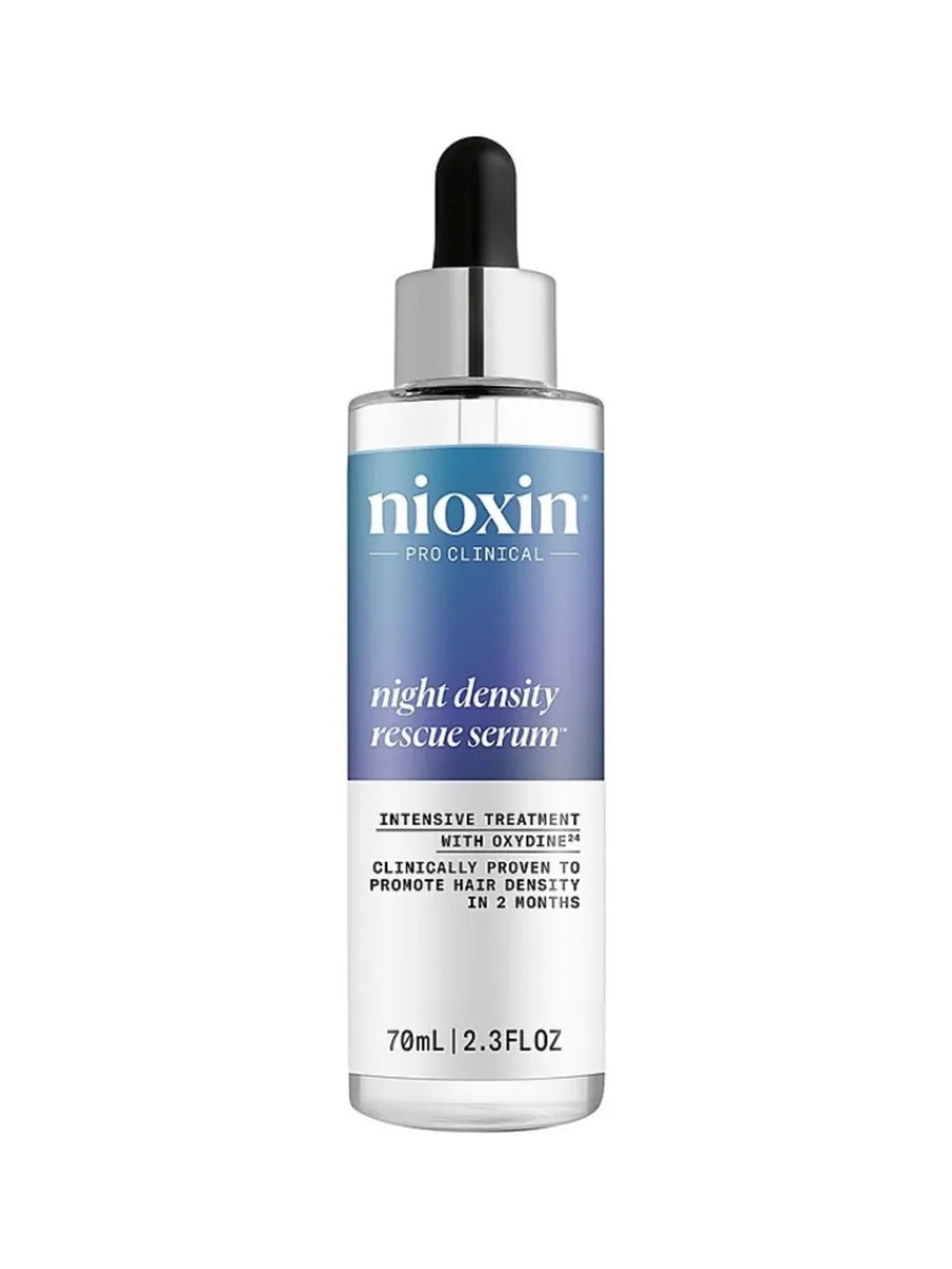 Nioxin Night Density Rescue is a leave-in night serum that visibly increases hair density and thickness, preventing hair loss due to oxidation on the scalp.