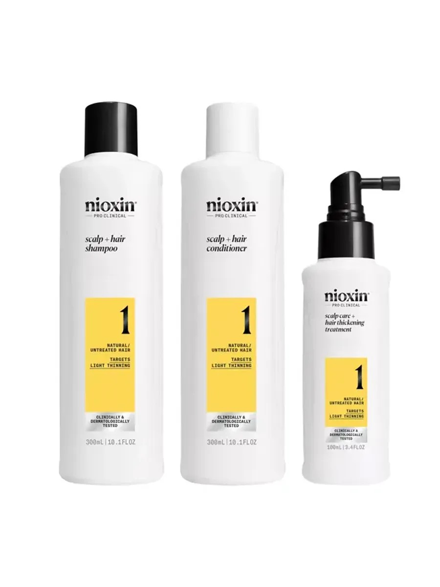 NIOXIN Hair System Kit 01 XXL НАБОР Система 1 (шампунь 300мл + кондиционер 300мл + маска 100мл) Система включает в себя три продукта по уходу за волосами, в основе которых лежит передовой подход к уходу за кожей головы и волосами. Продукты специально разработаны для укрепления волос и придания им визуальной густоты. Система предотвращает выпадение волос, укрепляет их, а также восстанавливает кожу головы, придавая натуральным, слегка редеющим волосам здоровый блеск. Шампунь (300 мл) очищает волосы и кожу головы. Увлажняющий кондиционер (300 мл) восстанавливает упругость волос, помогает контролировать баланс увлажнения кожи головы и волос. Питательная маска (100 мл) восстанавливает кожу головы и увеличивает объем волос. Протестировано дерматологами. Способ применения: равномерно распределите шампунь легкими массирующими движениями на коже головы и волосах. Смойте водой. Нанесите кондиционер от корней до кончиков волос. Оставьте на 1-3 минуты. Смойте водой. Тщательно встряхните флакон с питательной маской. Равномерно распределите по всей поверхности кожи головы. Не смывайте.