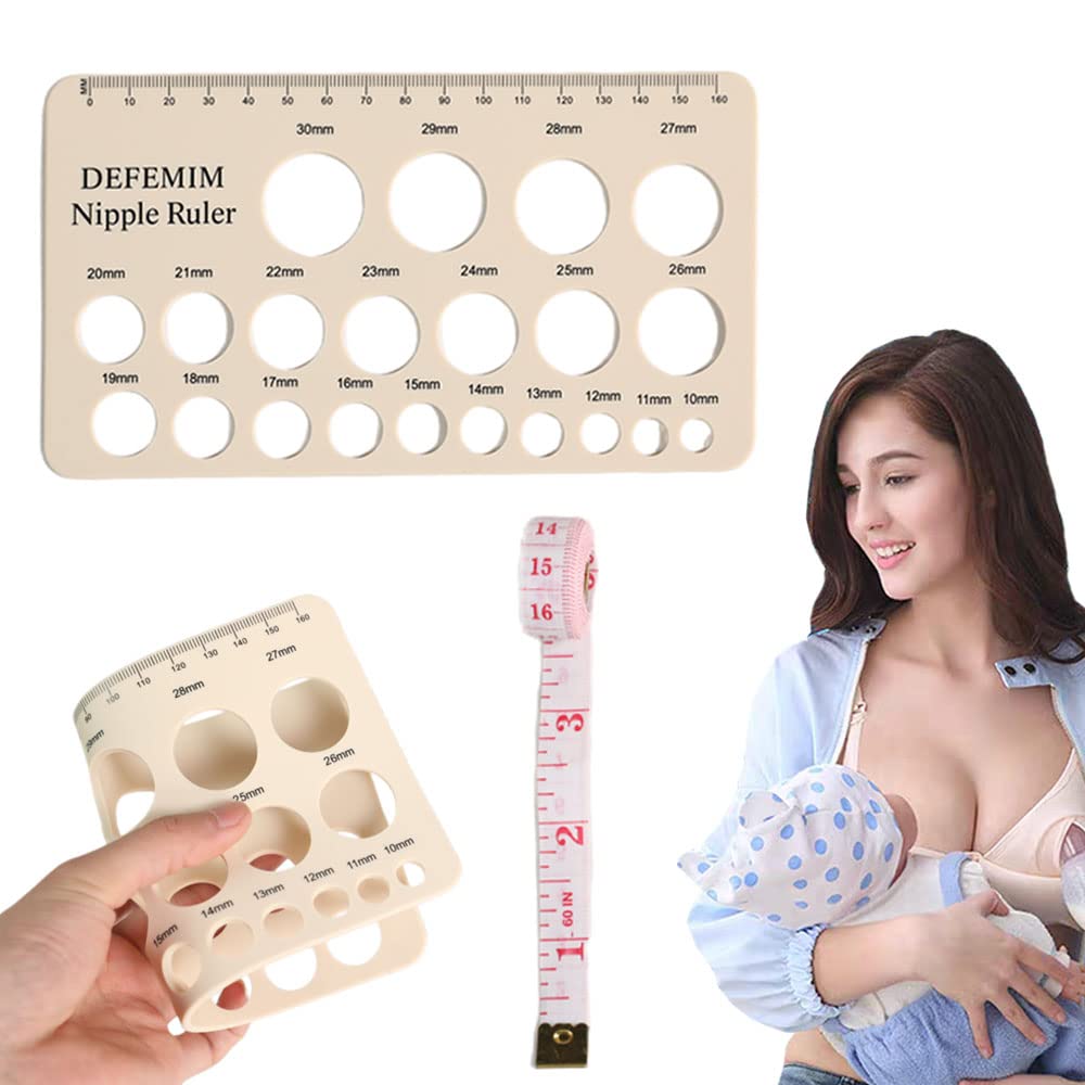 Silicone Nipple Rulers,get sized correctly in seconds,your size is indicated directly on the ruler,Find the flange that were meant for you and your nipples and comfortably pumps breast milk anytime, anywhere In addition, we also give the new mother a 1.5M soft ruler, which is also our blessing for you. This can better measure your waist, hip and chest circumference during the lactation period, so that you can better restore your perfect figure. Package list: one silicone nipple ruler+one 1.5M soft ruler,5:Package list: one silicone nipple ruler+one 1.5M soft ruler,Nipple Rulers Correct measurement of nipple size can effectively protect the nipple, provide the best convenience for the new mother, and find the right flange. 4:In addition, we also give the new mother a 1.5M soft ruler, which is also our blessing for you. This can better measure your waist, hip and chest circumference during the lactation period, so that you can better restore your perfect figure. 3:Silicone Nipple Rulers,get sized correctly in seconds,your size is indicated directly on the ruler,Find the flange that were meant for you and your nipples and comfortably pumps breast milk anytime, anywhere. 2:Silicone Nipple Rulers,Silicone material,very soft,Save your nipples from unnecessary pain,Having the correct sizes means you can finally be compfortable in any pumping product,Have more time to spend with your baby. 1:Silicone Nipple Rulers:There are 21 size measuring holes, which are very suitable for measuring various nipples. This is a necessary measuring tool for great mothers.Best Sellers Rank: See Top 100 in Baby. Is Dishwasher Safe: Yes. Item Dimensions LxWxH: 3.94 x 2.36 x 0.04 inches. Number of Items: 1. Material: Silicone. Brand: Defemim. : B0BXGPNYJ2. Manufacturer: Defemim. Date First Available: March 4, 2023. Item model number: 0-63. Product Dimensions: 3.94 x 2.36 x 0.04 inches; 2.4 Ounces.