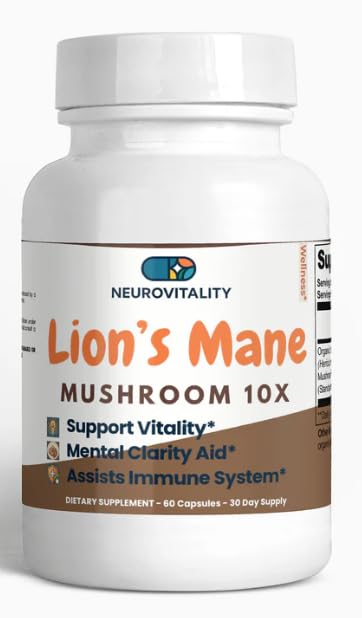 Nirvana Neurovitality Lions Mane Mushroom Cognition (60 Capsules) Lions Mane Mushroom Powder Extract Capsules | Brain Supplement Brain Vitamins Focus Supplement