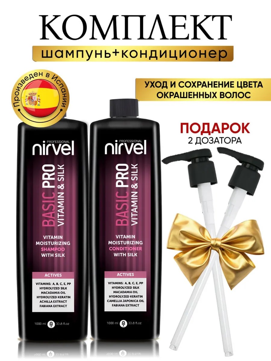 Витаминный увлажняющий шампунь Nirvel Basic Pro и кондиционер Nirvel Basic Pro от испанского бренда Nirvel Professional. Эти продукты разработаны для глубокой очистки и интенсивного увлажнения, сохраняя яркость и стойкость цвета окрашенных волос на длительное время.