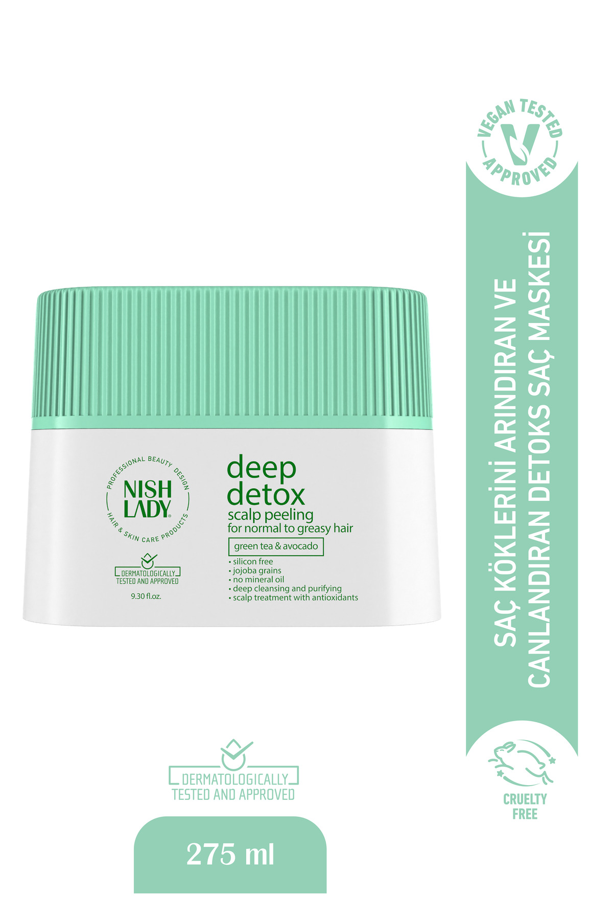 DEEP DETOX SAÇ MASKESI, saç köklerini derinlemesine temizleyen ve canlandiran özel bir bakim sunar. JOJOBA TANECIKLERI, YESIL ÇAY VE AVOKADO ÖZLERI ile zenginlestirilmis formülüyle saç diplerine masaj yaparak arindirir ve kan dolasimini hizlandirir. Saç köklerini besleyerek daha güçlü, parlak ve canli saçlara kavusmaniza yardimci olur. Bu saç maskesi, saçlari agirlastirmadan temizler ve besler.
