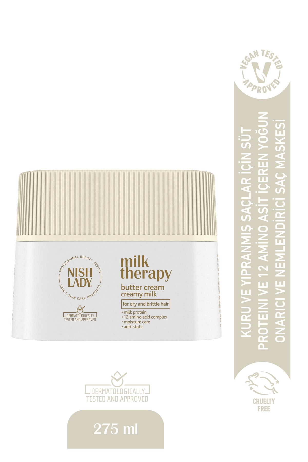 Not:Haftada 1-2 kez kullanilmasi önerilir. Saçlarin saglikli, güçlü ve canli görünümü için düzenli kullanim idealdir.Milk Therapy Saç Maskesi, kuru ve yipranmis saçlar için özel olarak gelistirilmis yogun bakim saglayan bir maskedir. Saç tellerini derinlemesine besler, onarir ve saçin ihtiyaci olan nemi saglar. Düzenli kullanimda saçlara yumusaklik, parlaklik ve canlilik kazandirir.