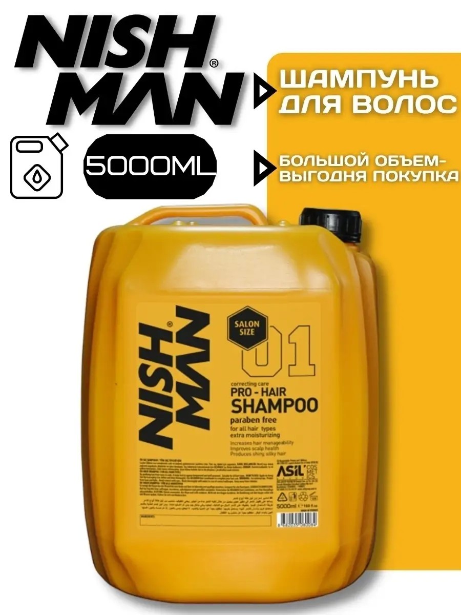Another advantage of this men's shampoo is its 5-liter capacity and convenient 5-liter canister packaging. Nishman shampoo is ideal for men of all ages and hair types. This shampoo is designed for all hair types and boasts incredible cleansing properties, effectively cleansing the hair and scalp while simultaneously removing styling products. Our moisturizing shampoo is a true standout among many other shampoos on the market for several reasons.