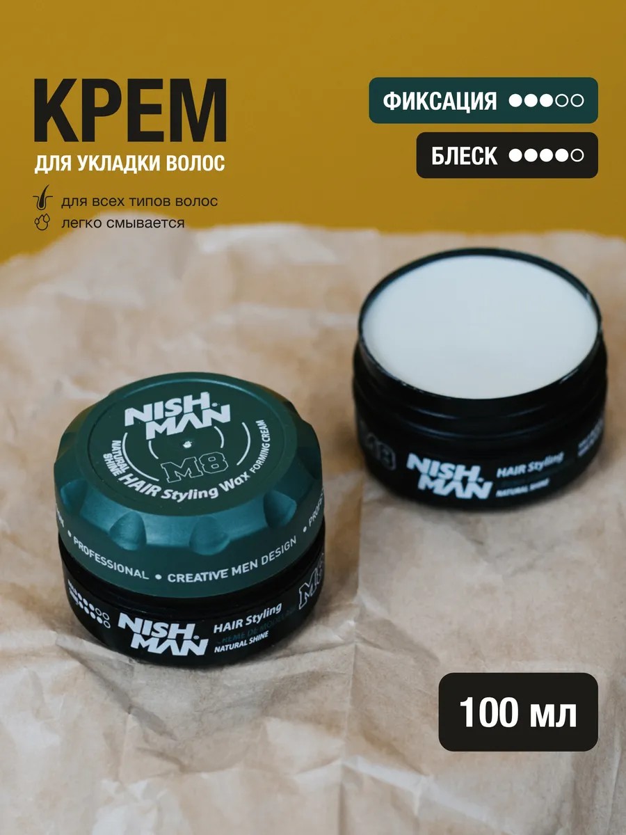 Матовый крем Nishman M8 для укладки волос - это смесь тщательно отобранных ингредиентов, которые обеспечивают естественный блеск и ультра сильную фиксацию, необходимую для создания густых, текстурированных и современных причесок на весь день. Стайлинг отлично подходит как для тонких коротких волос, так и для длинных.