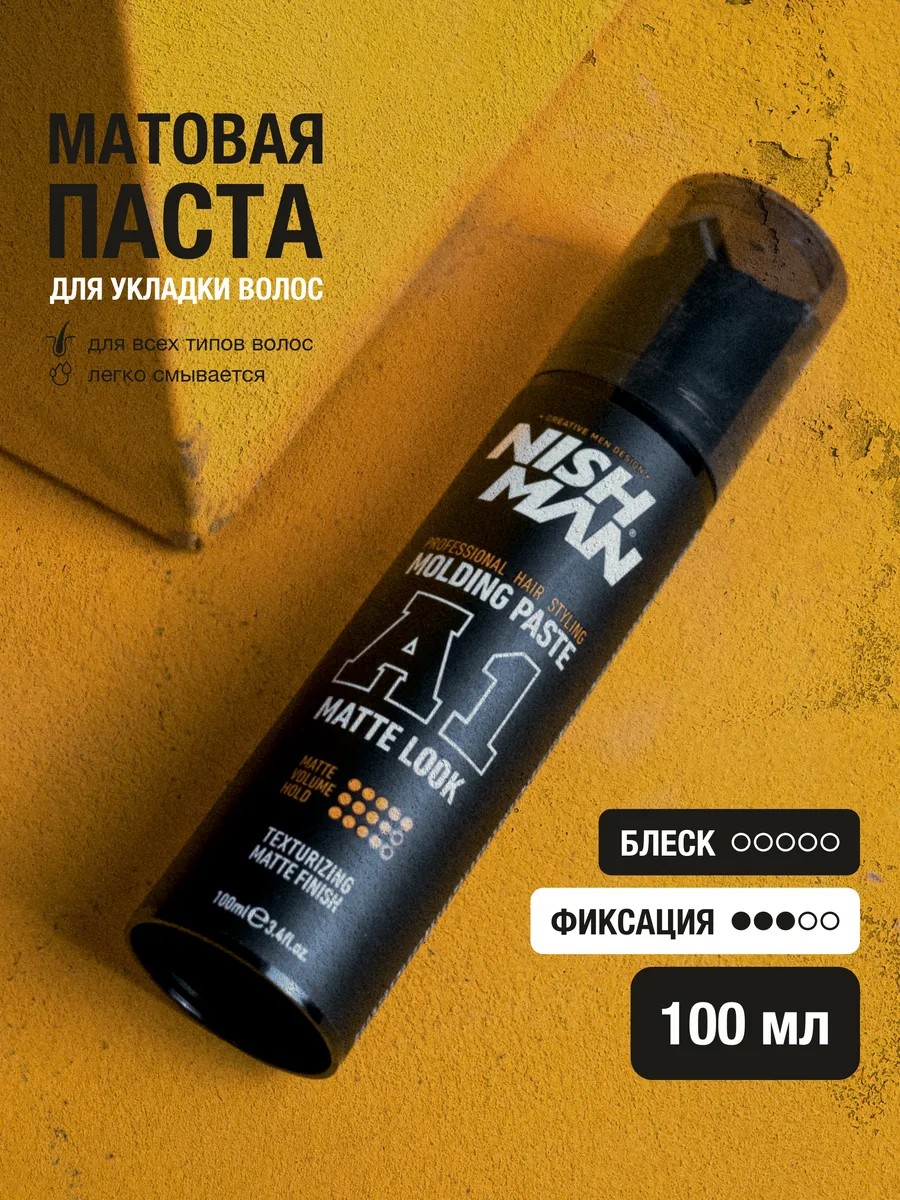 Nishman A1 Professional Matte Paste with medium hold is ideal for textured hairstyles, giving hair a natural matte finish without stickiness or shine. It spreads easily, providing flexibility and control, even for complex haircuts. This styling product not only provides hold but also adds volume.