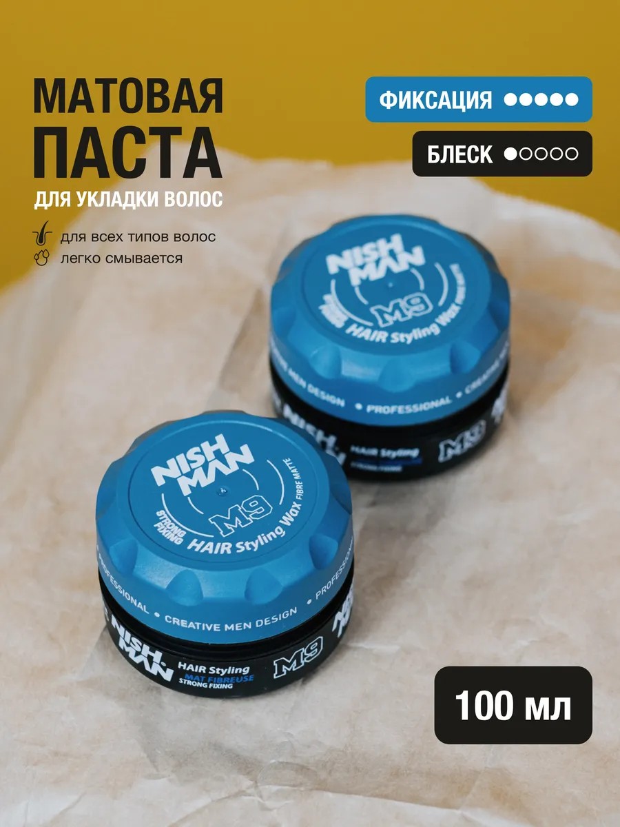 Паста для укладки волос Nishman M9 легко наносится и распределяется по волосам. Стайлинг подходит для создания объемных укладок и обеспечивает сильную фиксацию на весь день. Подходит для всех типов волос.
