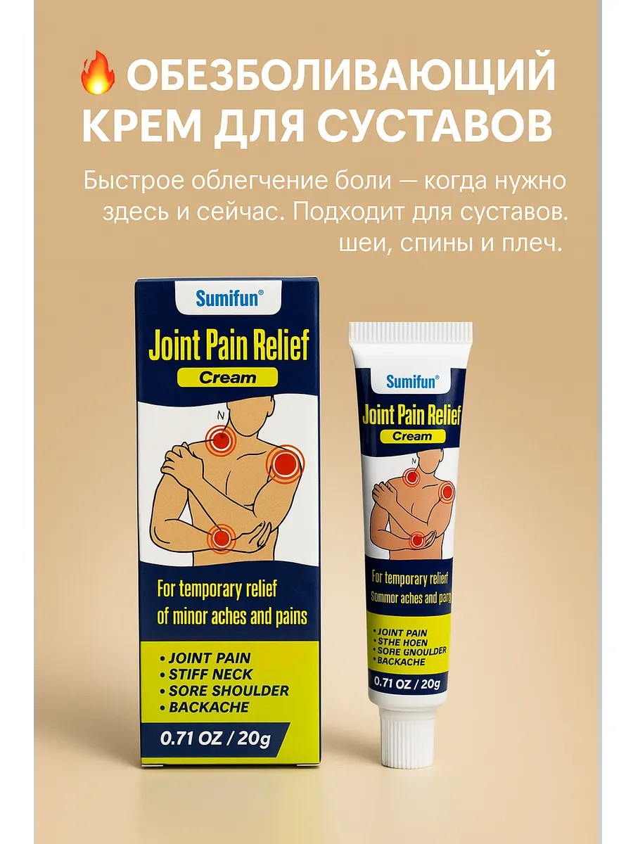 Эффективная мазь для суставов от боли Sumifun Joint Pain Relief 20 г — это проверенное средство, которое помогает справиться с дискомфортом в суставах, мышцах и позвоночнике. Идеально подходит для локального применения в домашних условиях. Незаменима при болях в спине, шее, пояснице и коленях.