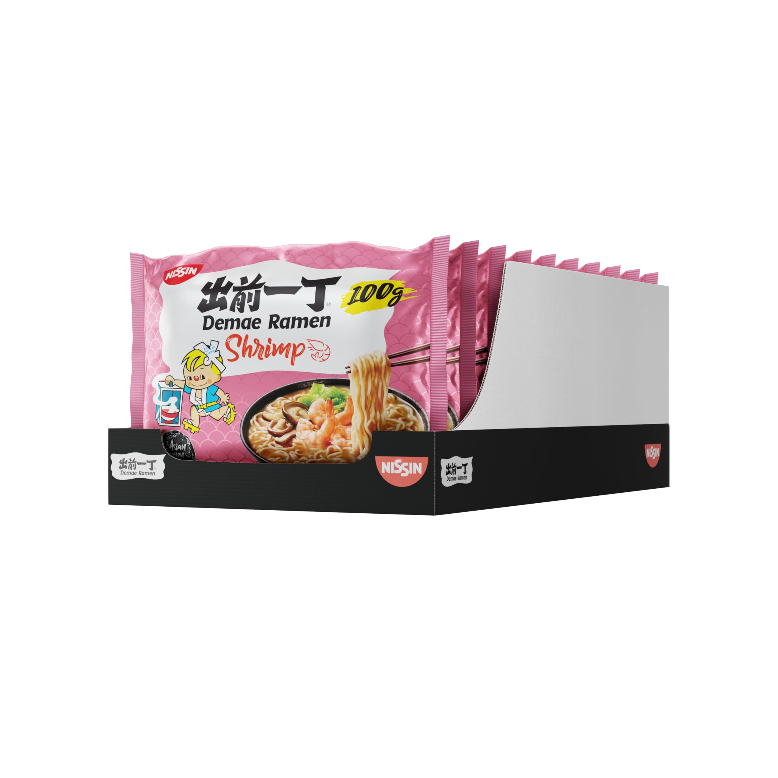Nissin Demae Ramen - Shrimp - Pack of 10 Nissin Demae ramen soup provides a quick and easy Asian main dish, perfect for home or the office. Thanks to the spicy flavor of soy sauce and the original wheat flour noodles, an authentic Japanese taste is created that will tantalize your senses. The easy preparation of the instant noodles adds a little something extra. Simply take out the packet of noodles and spices, pour boiling water over them, and let the Asian noodles steep for 3 minutes. The complete and flavorful main dish is ready. The dried noodles and other ingredients are transformed in a snap into a healthy, hot, and delicious meal that can be enjoyed anytime, anywhere. Just buy, prepare, and enjoy. Product features: Japanese-style wheat noodles, quick and easy preparation with boiling water, ideal when you're in a hurry. In 1958, Momofuku Ando Chicken Ramen, the world's first instant noodles, laid the foundation for an entire industry. Its Cupnoodles have become an integral part of global food culture. Since then, the Nissin Foods Group has explored numerous ways to produce safe and healthy food, creating delicacies that are a true dream in terms of taste. Whether at work or at home, the famous Cupnoodles are ideal for on-the-go or when you need a quick meal. INGREDIENTS Ingredients: Noodles 93.0 [Wheat flour, palm oil, table salt, flour treatment (sodium carbonate, triphosphate), stabilizer (potassium carbonate), thickener (guar gum), antioxidant (tocopherol-rich extracts)], Seasoning powder 7.0 [Table salt, flavor enhancer (monona)]. Glutamate triumvirate, disodium guanylate, disodium dinate), sugar, spices, shrimp powder (5.0 seasoning powder), hydrolyzed corn protein, flavorings (contains wheat, soy, crustaceans), soy sauce powder (soybeans, wheat, salt, maltodextrin), yeast extract, color (sugar granules), rapeseed oil, release agent (silicon dioxide). May contain traces of celery, fish, milk, mollusks, mustard, and sesame. INSTRUCTIONS FOR USE Remove the pasta and spice packet, pour boiling water over it, and let the Asian noodles steep for 3 minutes. MANUFACTURER'S CONTACT INFORMATION NISSIN FOODS KFT, MOMOFUKU U. 4, 6000, KECSKEMÉT, HU See moreNISSIN Demae Ramen – Lot de 10 pâtes instantanées japonaises saveur crevette et épices asiatiques, préparation rapide et facile, nourriture asiatique (10 x 100 g)DESCRIPTION DU PRODUIT DESCRIPTION DU PRODUIT Nissin Demae Ramen - Crevettes - Lot de 10 La soupe de ramen Nissin Demae fournit un plat principal asiatique simple et rapide directement chez vous et au bureau. Grâce au goût épicé de sauce soja et aux pâtes originales à base de farine de blé, un goût japonais authentique est créé qui gâte votre sixième sens. La préparation facile des nouilles instantanées donne au plat un petit quelque chose en plus. Sortez le paquet de pâtes et d'épices, versez de l'eau bouillante dessus et laissez infuser les nouilles asiatiques pendant 3 minutes. Le plat principal complet et savoureux est prêt. Les nouilles séchées ainsi que les autres ingrédients se transforment en un tour de main en un plat sain, chaud et savoureux qui peut être consommé à tout moment et n'importe où. Il suffit d'acheter, de préparer et de profiter. Le produit possède les propriétés suivantes : nouilles de blé à la japonaise, préparation simple et rapide avec de l'eau bouillante, idéale si vous devez aller vite. En 1958, Momofuku Ando Chicken Ramen, les premières nouilles instantanées au monde, créant ainsi la base d'une industrie entière. Ses CUPNOODLES ont fait partie intégrante de la culture alimentaire mondiale. Depuis lors, le groupe Nissin FOODS explore de nombreuses façons de produire des aliments sûrs et sains et crée des délices qui sont un véritable rêve en termes de goût. Que ce soit au travail ou à la maison, les célèbres CUPNOODLES sont idéales pour les déplacements ou lorsque vous devez aller vite. INGRÉDIENTS Ingrédients : pâtes 93,0 [farine de blé, huile de palme, sel de table, traitement de la farine (carbonate de sodium, triphosphate), stabilisateur (carbonate de potassium), épaississant (gomme de guar), antioxydant (extraits riches en tocophérol)], poudre d'assaisonnement 7,0 [sel de table, exhausteur de goût (monona). glutamate trium, Guanylate disodique, Dinate disodique), sucre, épices, poudre de crevette (5,0 de poudre d'assaisonnement), protéines de maïs hydrolysées, arômes (contient du blé, du soja, des crustacés), poudre de sauce de soja (haricots de soja, blé, sel de cuisine, maltodextrine), levure extrait, colorant (grains de sucre), huile de colza, agent de démoulage (dioxyde de silicium)]. Peut contenir des traces de céleri, poisson, lait, mollusques, moutarde et sésame. MODE D'EMPLOI Retirer le paquet de pâtes et d'épices, verser de l'eau bouillante dessus et laisser infuser les nouilles asiatiques pendant 3 minutes. COORDONNÉES DU FABRICANT NISSIN FOODS KFT, MOMOFUKU U. 4, 6000, KECSKEMÉT, HU Voir plus