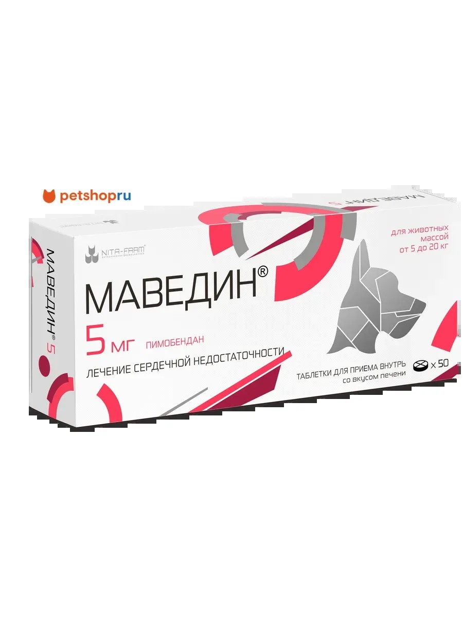 Маведин для сердечной недостат. у собак, 5 мг, 50 таб