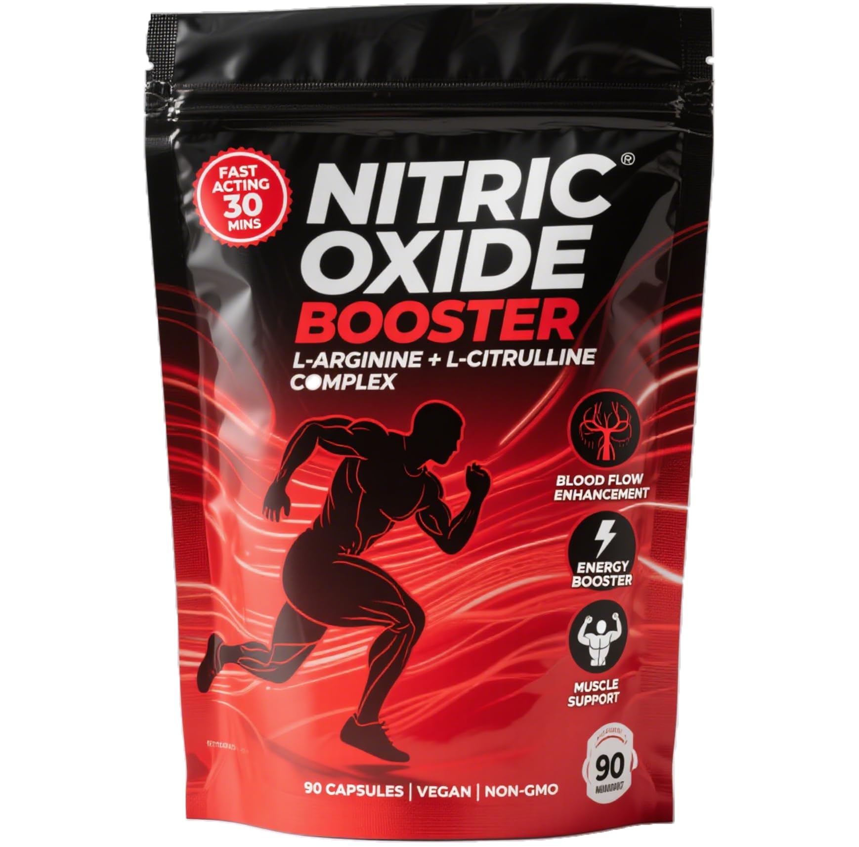 Our fast-acting Nitric Oxide Booster, with L-Arginine, L-Citrulline, Beet Root, Muira Puama, Asian Ginseng, and Tribulus Terrestris, fuels nitric oxide production for better blood flow, vein health, and lung capacity. It naturally boosts energy, enhances muscle pump, and supports growth recovery—perfect for workouts or daily life. Made with premium, GMP-certified, 3rd party-tested ingredients non-GMO, gluten-free, vegan.Comprehensive Wellness Support – Beyond circulation and energy, our 90-capsule formula delivers holistic benefits: from maintaining healthy blood vessels to supporting muscle health. It's more than a supplement – it's a daily boost for your body's overall performance. Premium Quality You Can Trust – Every batch is crafted with high-quality, non-GMO ingredients in a GMP-certified facility and undergoes 3rd party testing for purity and potency. Gluten-free and vegan-friendly, it's designed to fit diverse lifestyles and dietary needs. Maximize Muscle Pump Recovery – Tribulus Terrestris Fruit works alongside our amino acid blend to enhance muscle pump during workouts, while supporting post-exercise recovery and growth. Perfect for fitness enthusiasts looking to optimize gains and reduce downtime. Natural Energy Performance Boost – Powered by Asian Ginseng Root and Muira Puama Bark, our supplement naturally elevates energy levels without harsh stimulants. Whether you're hitting the gym or tackling daily tasks, it fuels sustained vitality to keep you going strong. Amplify Nitric Oxide Enhance Blood Flow – Our fast-acting formula combines L-Arginine, L-Citrulline, and Beet Root Powder to support healthy nitric oxide production, promoting optimal blood flow throughout the body. This helps nourish veins, blood vessels, and even supports lung capacity for overall vitality.