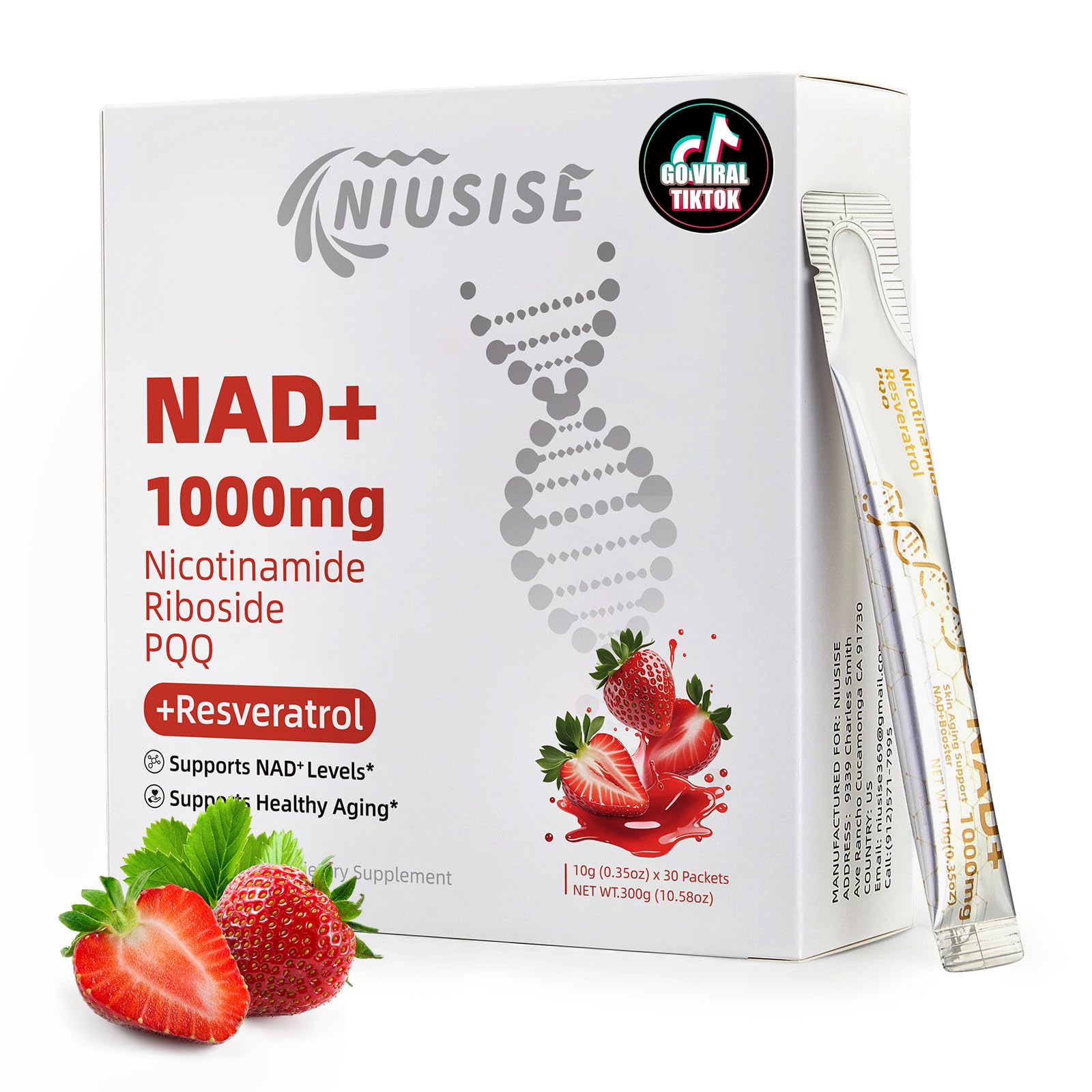 NIUSISE NAD Supplement NAD+ Liquid 1000mg Enhanced Formula with PQQ Nicotinamide Riboside & Resveratrol Advanced Anti-Aging Support for Men & Women Sustained Energy Vitality Boost (30 Packets)