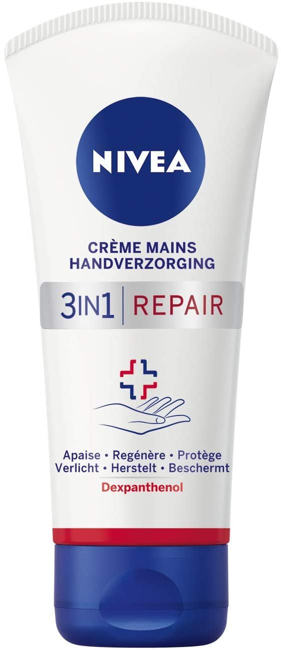 NIVEA 3 in 1 Hand Cream Repair Very Dry & Rough Skin (1 x 75 ml) Moisturizing Hand Care Rich and Non-Greasy Formula Repairing Moisturizing Cream with Dexpanthenol