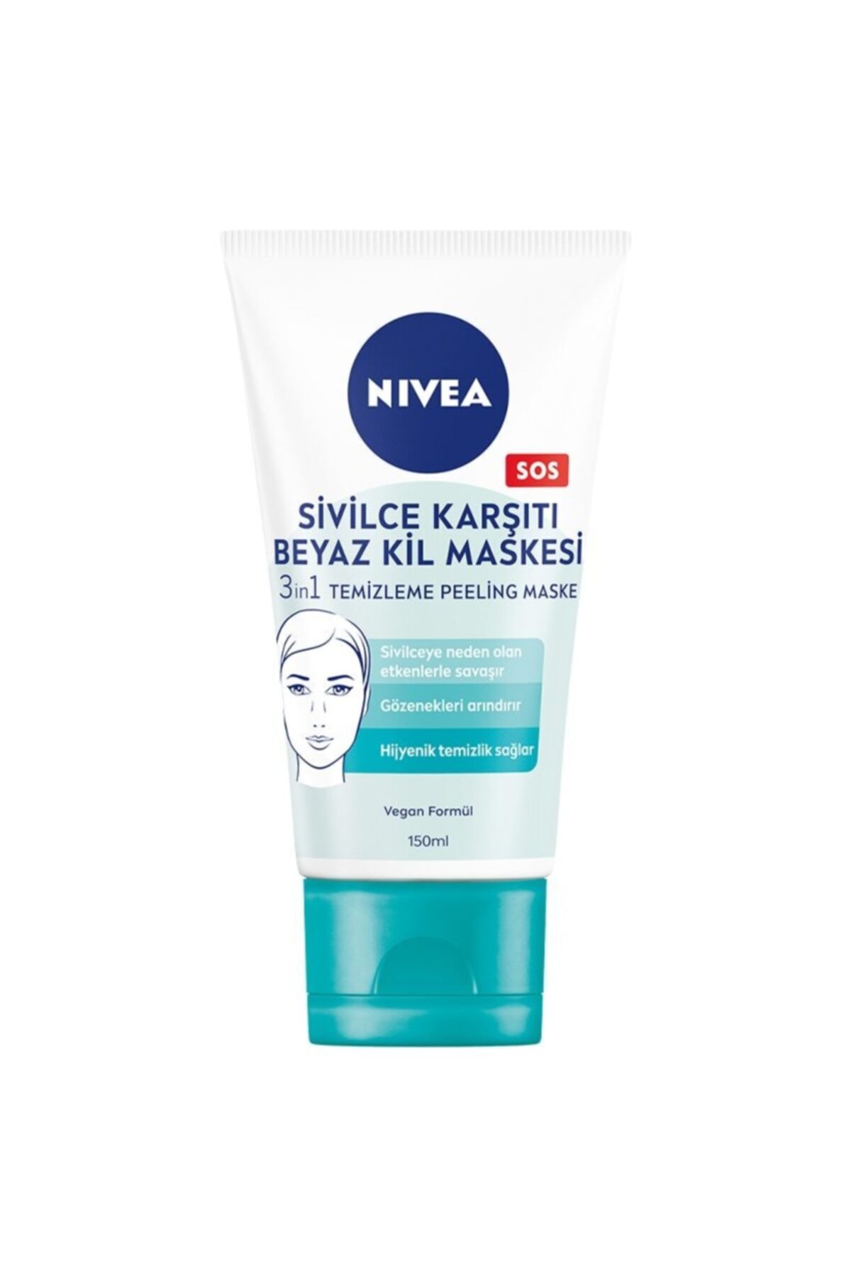 Nivea Sivilce Karsiti 3'ü 1 Arada Beyaz Kil Maskesi, Manolya Özü ve Beyaz Kil içeren formülüyle siyah noktalari temizler, gözenekleri arindirir ve pürüzsüz bir cilt görünümü saglar.