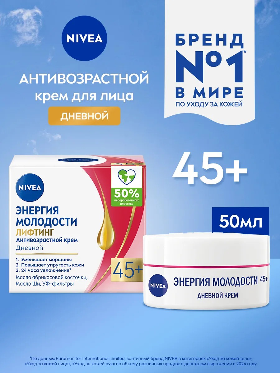 | Full name of the product | NIVEA Anti-aging day face cream "Energy of Youth" Lifting 45+ against wrinkles, 50 ml. |