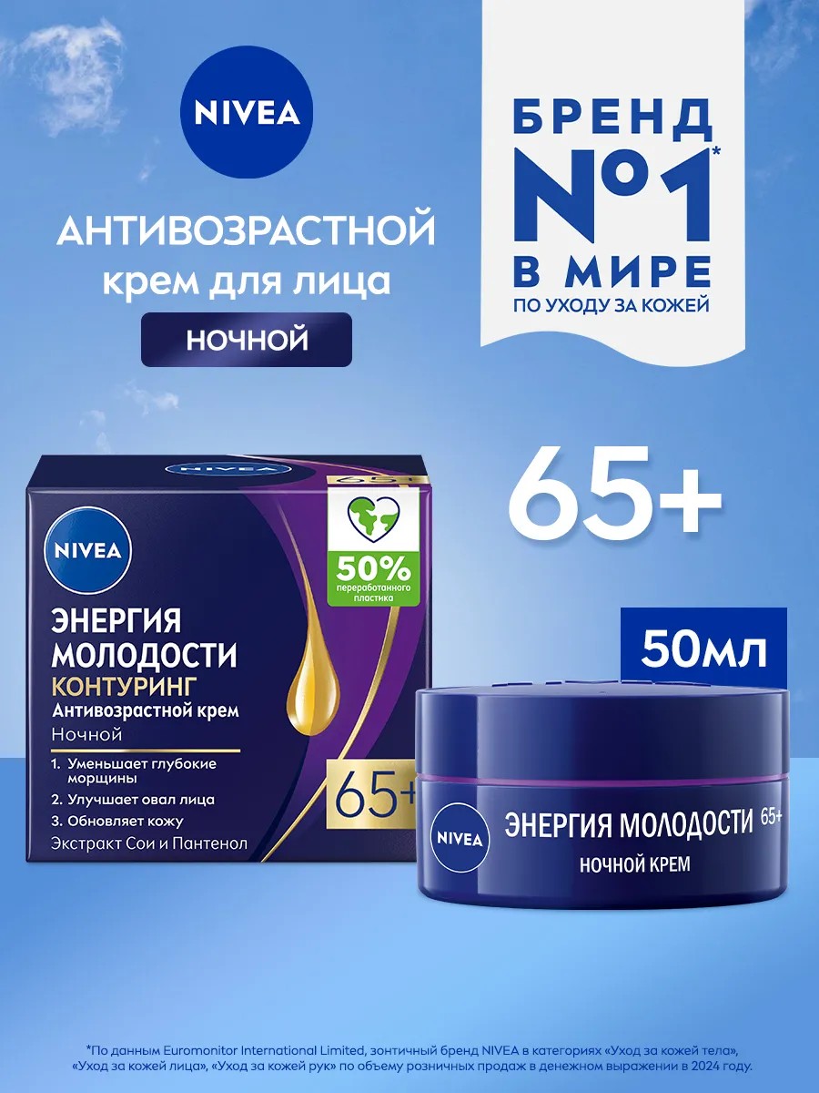 | Full name of the product | NIVEA Anti-aging night face cream "Energy of Youth" Contouring 65+ against wrinkles, 50 ml. |