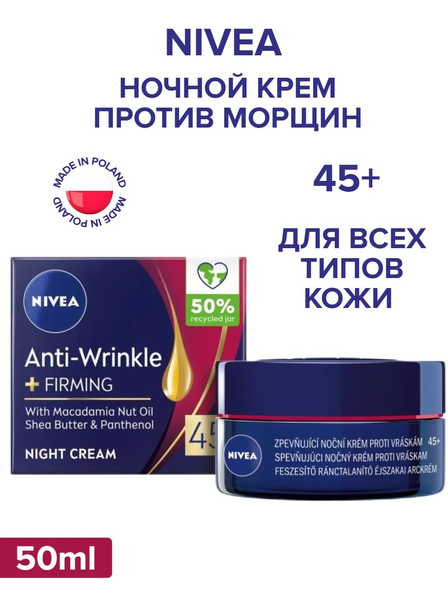 Nivea Anti-Wrinkle+Firming, Увлажняющий ночной крем против морщин 50 мл.