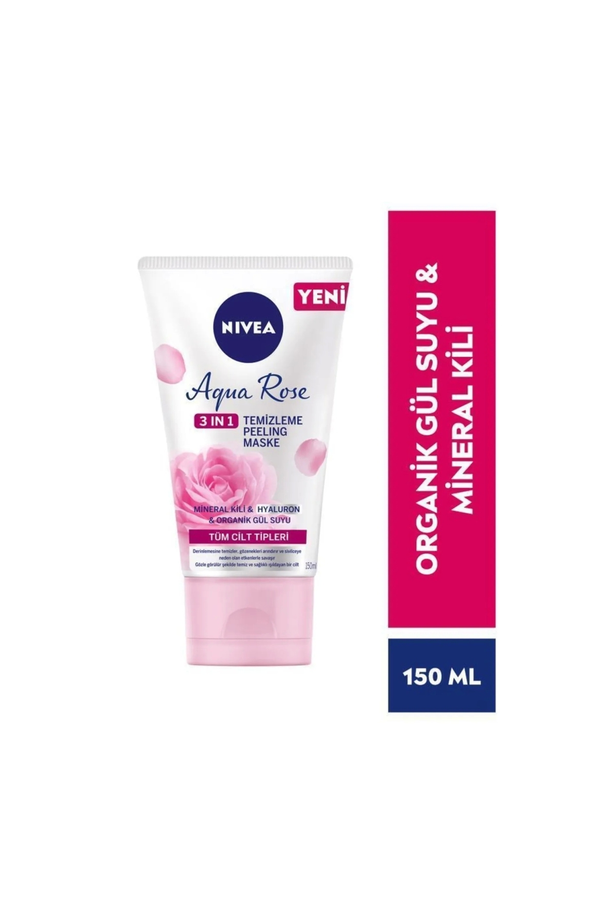 NIVEA Aqua Rose 3in1 Facial Cleansing Peeling Mask Organic Rose Water Hyaluron Mineral Clay 150 Ml