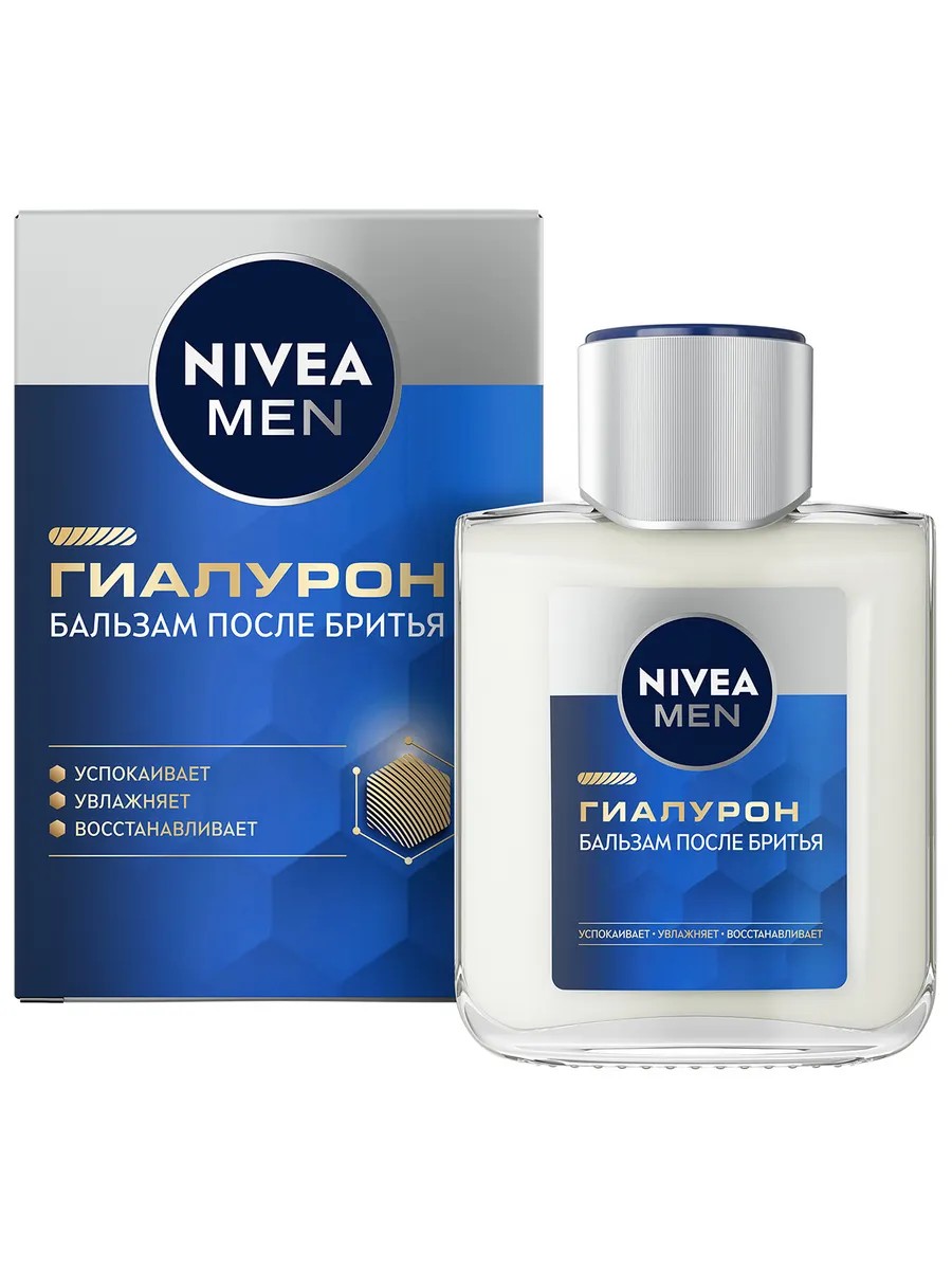 Nivea Men Бальзам после бритья для чувствительной кожи Гиалурон 100мл. С бальзамом после бритья “ГИАЛУРОН” от нивея ваша кожа готова к изменениям. Благодаря уникальной формуле с гиалуроном, это средство после бритья успокаивает и восстанавливает кожу после удаления волос, мгновенно освежая ее.