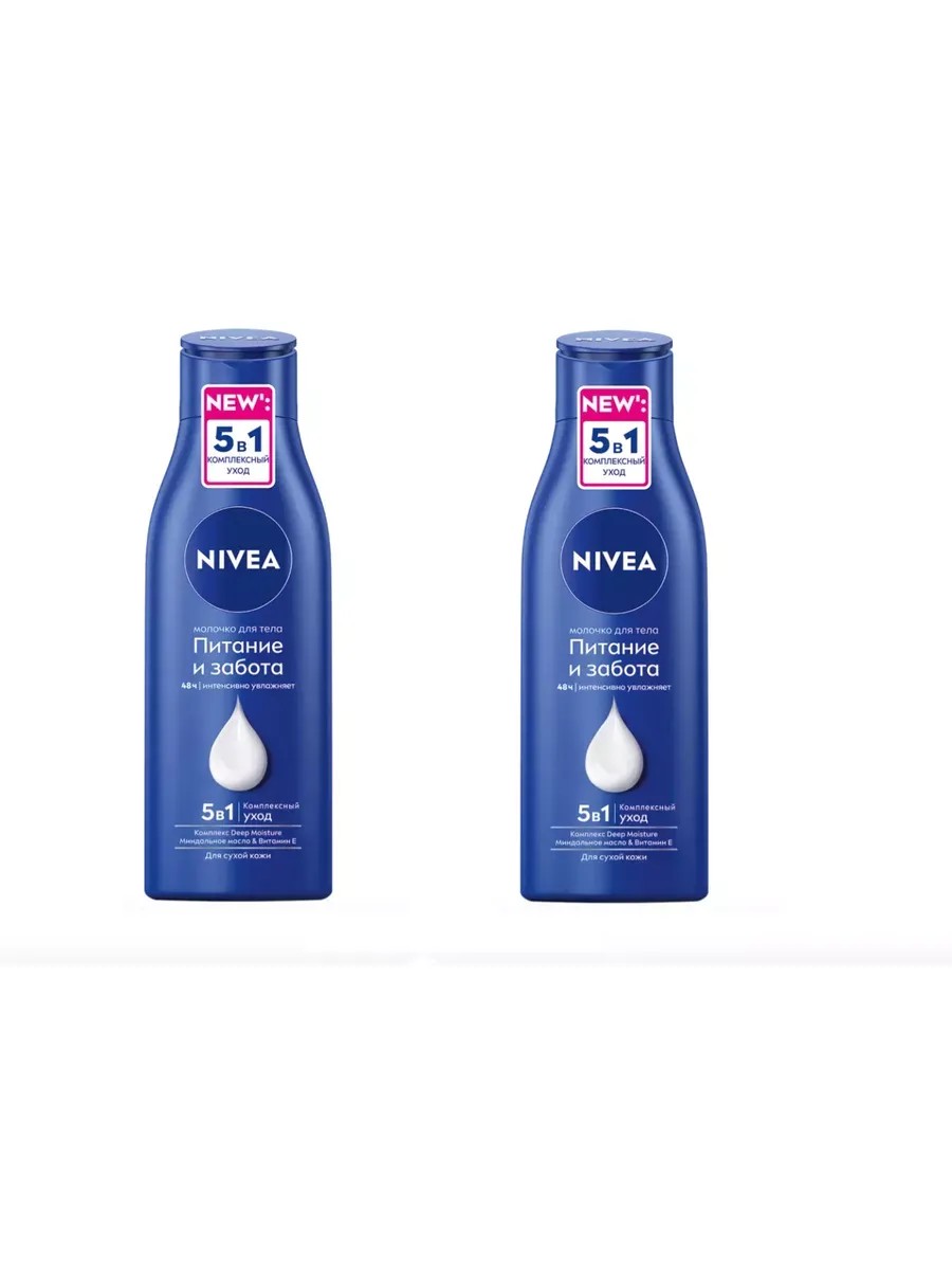 Nivea, Молочко для тела Питание и забота, 250 мл. Комплект 2 шт. Насыщенное питательное молочко с сывороткой, натуральным миндальным маслом и витамином E интенсивно питает в течение 48 часов (при регулярном использовании), заметно уменьшая шероховатость вашей очень сухой кожи - всего за 1 нанесение. Ежедневно наносите молочко для тела, повторно проходясь по наиболее сухим участкам - локти, коленки, стопы. В составе ингредиенты, тщательно отобранные в соответствии со строгими стандартами качества Nivea. Применение: немного средства налить в ладони и втирать в кожу круговыми массажными движениями, распределяя по всему телу. Не стоит использовать сразу большое количество - от этого кожа не впитает в себя больше, а остатки будут находиться на поверхности, предоставляя вам дискомфорт.