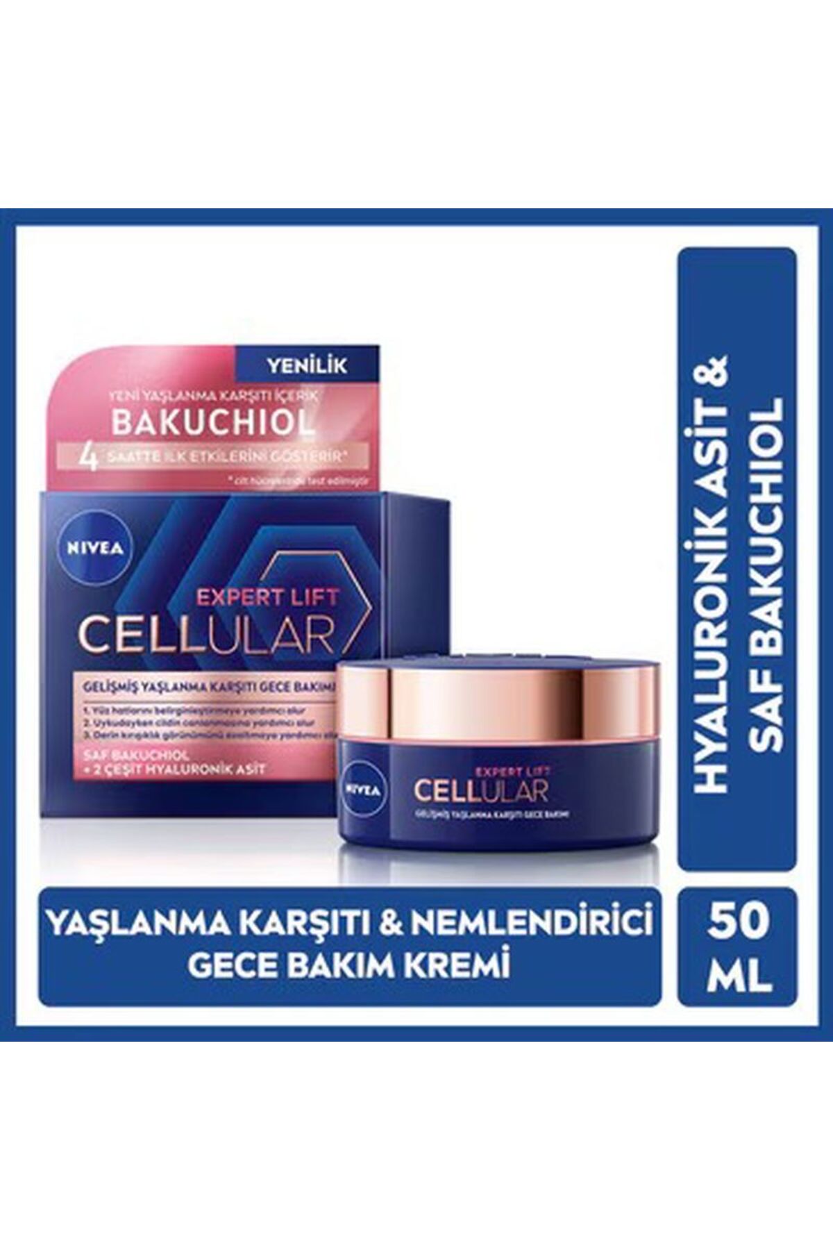 NIVEA Cellular Expert Lift Gelismis Yaslanma Karsiti Gece Kremi gelismis yaslanma karsiti formülümüyle daha genç görünen cildi ortaya çikartmak için güçlü yaslanma karsiti içeriklerin bir kombinasyonunu içerir.