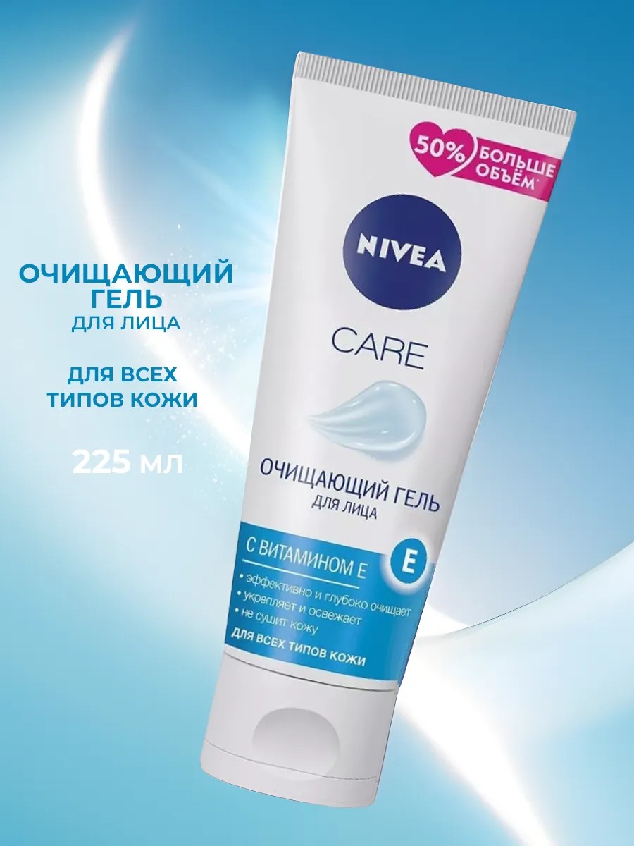 Nivea Care Cleansing Gel with Vitamin E, 225 ml. NIVEA CARE Cleansing Gel is specially designed for your daily cleansing ritual, removing external impurities and makeup. Its gentle formula doesn't leave your skin feeling dry and is suitable for all skin types. Vitamin E prevents dry skin, refreshes, and foams easily, deeply yet gently cleansing the skin of impurities and makeup residue. It also tightens pores. Enjoy the economical, large-volume 225 ml package. It's long lasting! Directions: Apply a drop of gel with massaging movements to damp skin of your face, neck, and décolleté. Rinse with warm water. For comprehensive daily care, use Nivea Care moisturizer after cleansing. Enjoy fresh and moisturized skin all day!