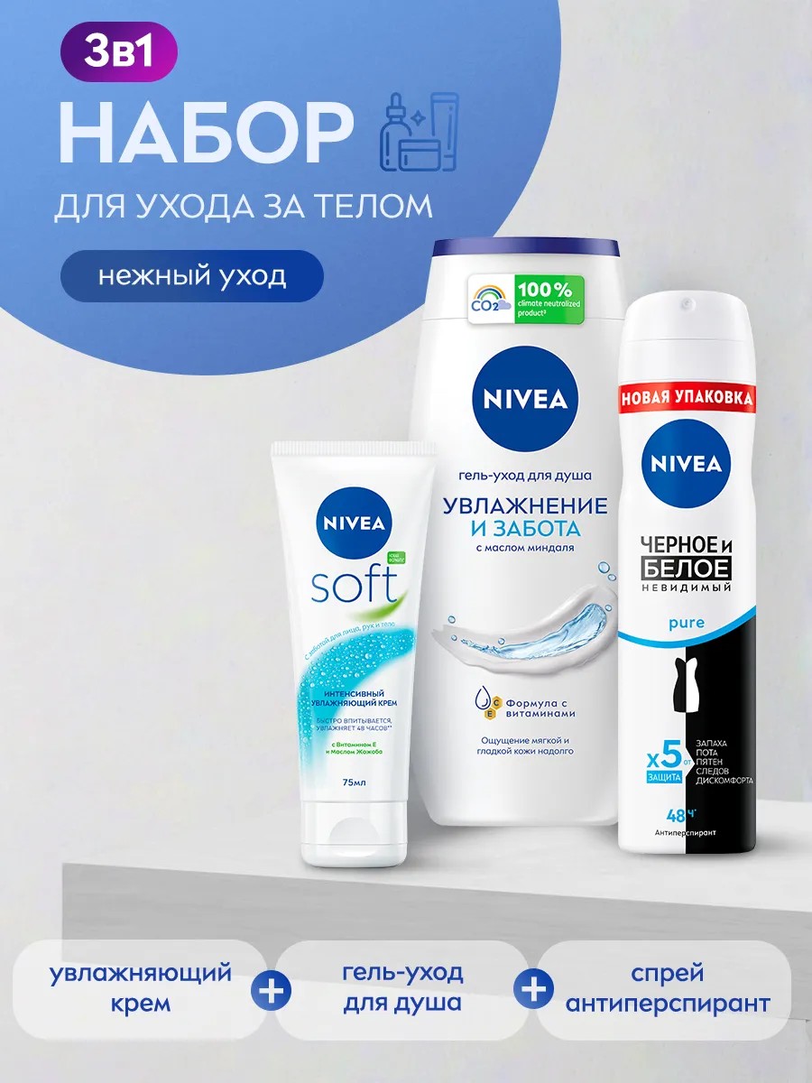 NIVEA Набор косметики: дезодорант, гель для душа и крем Soft