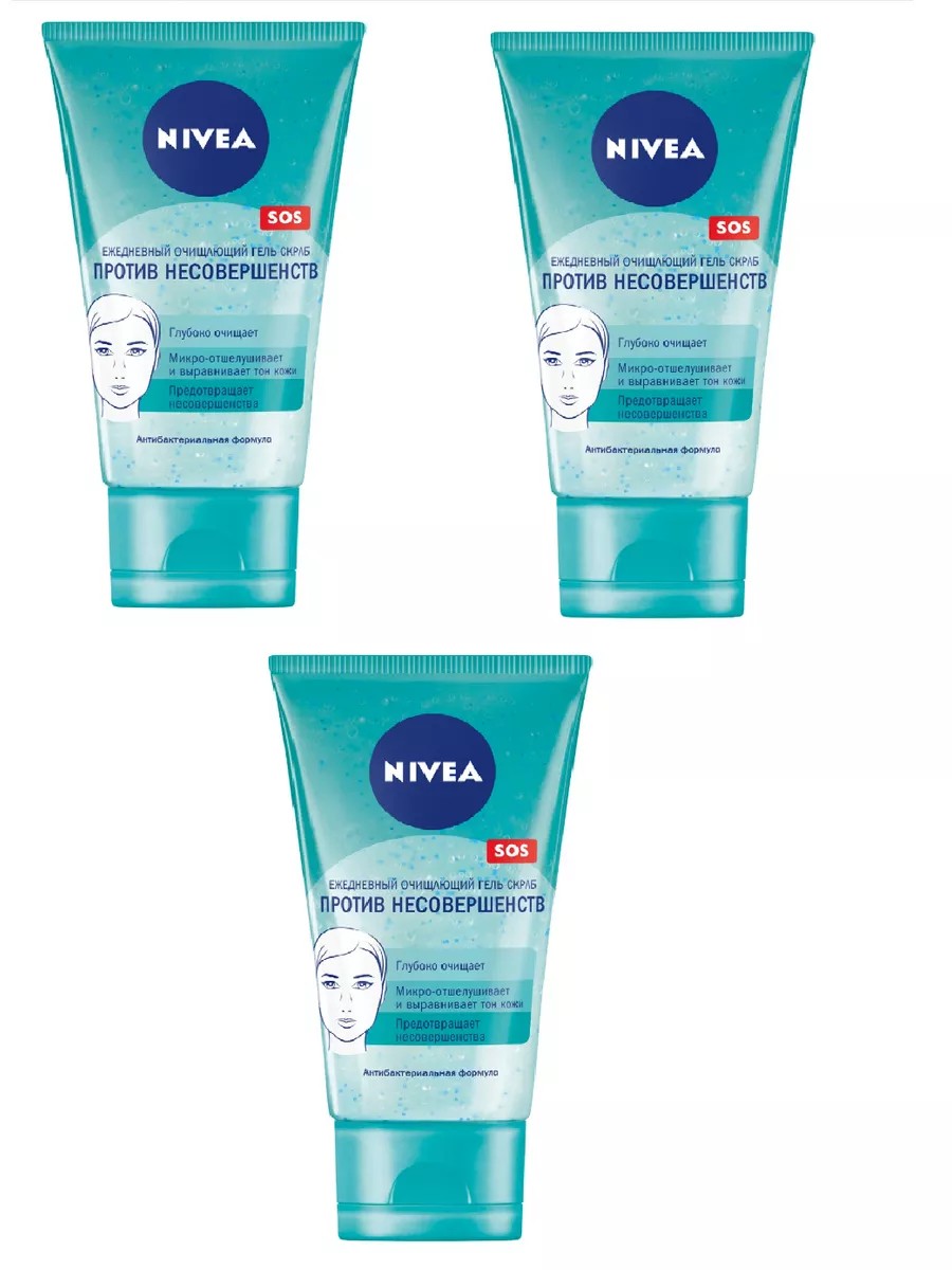 Nivea. Ежедневный очищающий гель-скраб против несовершенств, 3 шт.