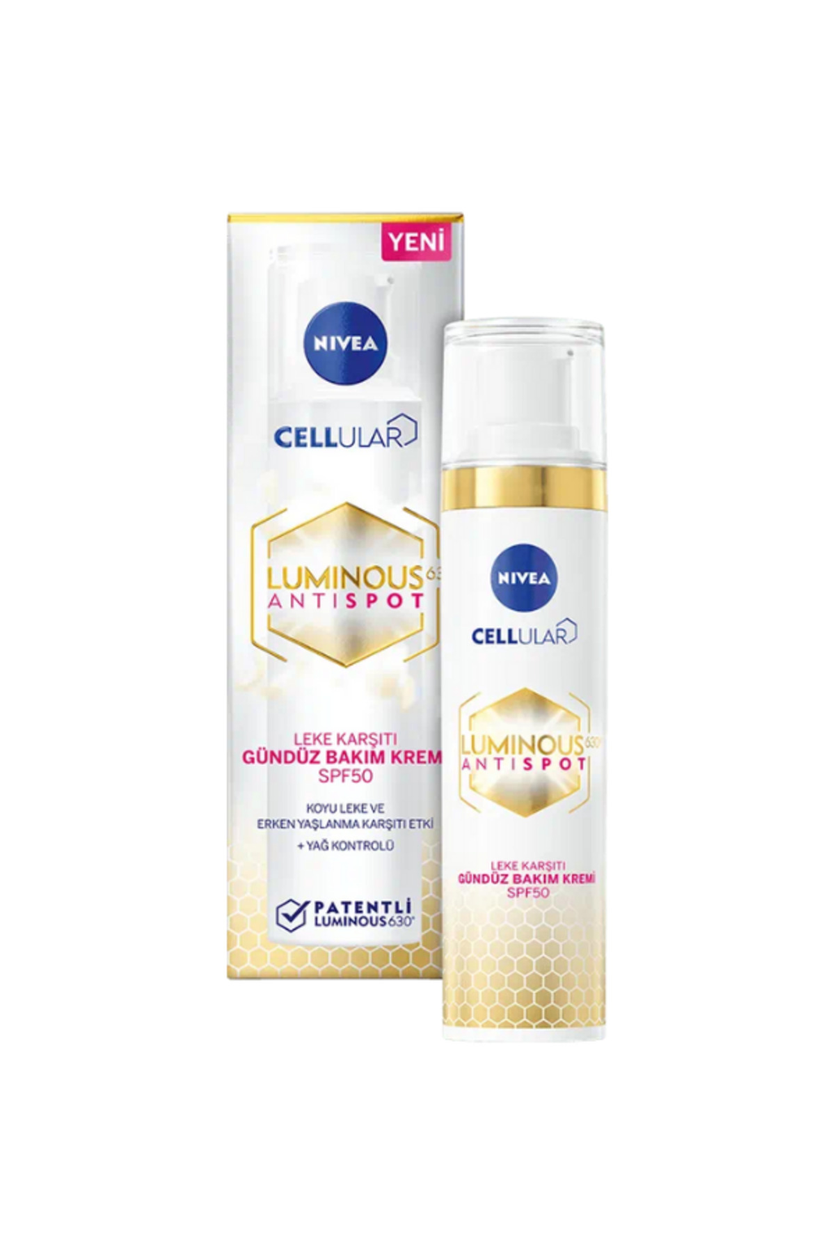 • Thiamidol has proven to be more effective than commonly used anti-blemish ingredients. Luminous630 formula is enriched with Hyaluronic Acid, Vitamin E and UVA UVB filters for extra protection. Thanks to the SPF50 sun protection it contains, it helps protect the skin against premature aging due to the sun. With its advanced texture, it provides a more even skin tone and an enlightened skin. It moisturizes, mattifies and smoothes the skin by controlling oil. It works on all blemish types. It is effective. Best result: 2 times equal skin tone when using 3 products together: Use NIVEA Luminous630 Anti-Blemish Serum, Anti-Blemish Day Care Cream SPF 50 and Anti-Blemish Night Care Cream together. How to Use NIVEA Luminous630 Sun Protection Anti-Blemish Day Face Cream? You can apply it by massaging on clean face after your morning routine.