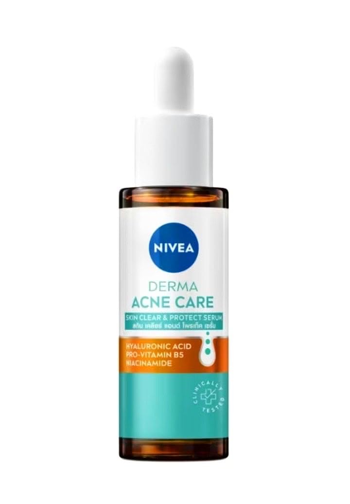 Nivea Derma Acne Care Skin Clear and Protect Serum with Hyaluronic Acid Niacinamide Pro-Vitamin B5 Oil-Free Formula 30ml for Blemish-Prone Skin