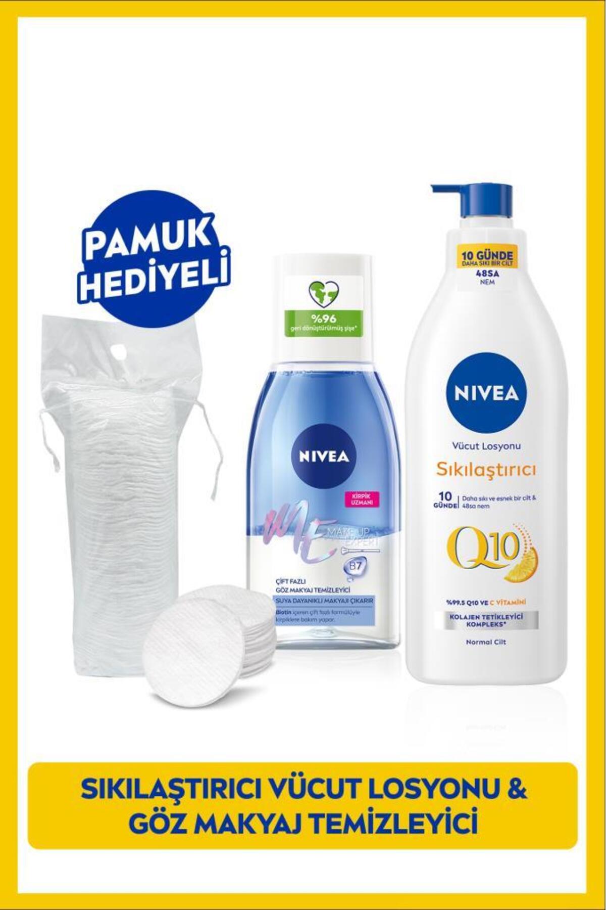NIVEA Dual Phase Eye Makeup Remover Water 125ml and Q10 Firming Body Lotion 400ml Cotton Gift