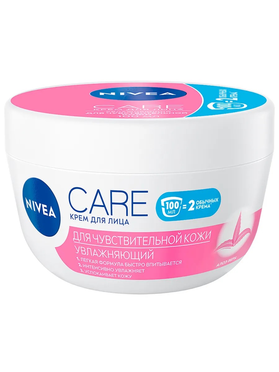 Увлажняющий дневной крем NIVEA CARE с экстрактом Алоэ Вера — это настоящее спасение для обладательниц чувствительной кожи. Благодаря своей легкой текстуре нивея крем моментально впитывается, не оставляя ощущения липкости или жирности на коже.