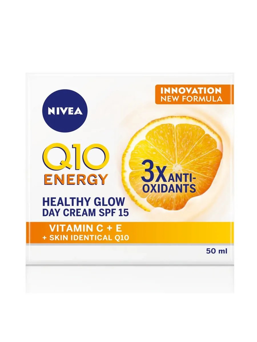 NIVEA Energy Q10 Day Face Cream 50 ml is the ideal solution for those who value radiant and firm skin. Enriched with coenzyme Q10 and vitamins, the cream's formula effectively combats signs of fatigue, leaving skin looking fresher and more rested. The cream's light texture absorbs quickly without leaving a greasy shine, creating an ideal base for makeup. Regular use of Energy Q10 cream will help you maintain the youthfulness and beauty of your skin for a long time.