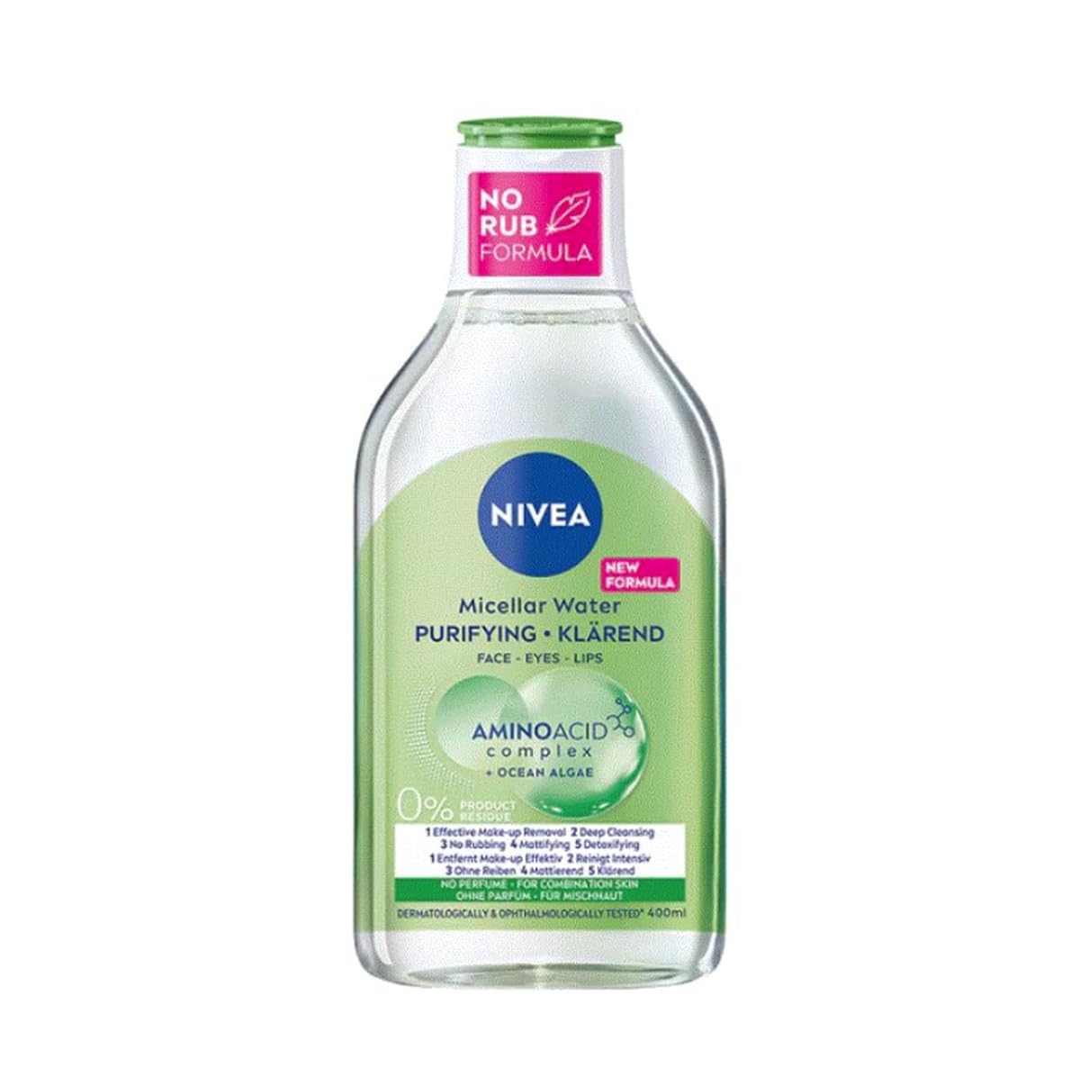 : We love clean skin! That's why NIVEA Purifying Micellar Cleansing Liquid was created with a formula containing an amino acid complex and ocean algae. The makeup remover is also enriched with cleansing micelles to effectively remove makeup, impurities, and dirt with just a few swipes of a feather-soft cotton pad! NIVEA Micellar Cleansing Liquid is gentle on the skin and cleanses deeply without rubbing. NIVEA makeup remover is suitable for sensitive skin and is fragrance-free. The micellar makeup remover is dermatologically and ophthalmologically tested. No rinsing required. The formula is composed of 95 naturally derived ingredients (including water) and is free of microplastics (in accordance with the UNEP definition). The bottle is made from 97 recycled plastic (excluding the label, cap, and lid). Ingredients: Aqua, Alcohol Denat., Poloxamer 124, Glycine, Fucus Vesiculosus Extract, Camellia Sinensis Leaf Extract, Glycerin, Sorbitol, Caprylic Capric Triglyceride, Decyl Glucoside, Disodium Cocoyl Glutamate, Propylene Glycol, 1,2,2-Hexanediol, Citric Acid, PEG-40 Hydrogenated Castor Oil, Trisodium EDTA, Polyquaternium-10, Phenoxyethanol, Sodium Benzoate, BHT. P.when('A').execute(function(A) { A.on('a:expander:toggle_description:toggle:collapse', function(data) { window.scroll(0, data.expander. expander[0].offsetTop-100) }) }) Safety Warning: For external use only. See moreNIVEA liquid cleanser is also suitable for sensitive skin. The product has been dermatologically and ophthalmologically tested. It mattifies and detoxifies the skin. It effectively removes makeup, impurities, and dirt with just a few light strokes, without the need for rubbing. The makeup remover is suitable for combination skin. The micellar liquid contains a formula with an amino acid complex and ocean algae.Description du produit Nous aimons la peau propre! C'est pourquoi le Liquide Micellaire Purifiant NIVEA a été créé avec une formule contenant un complexe d'acides aminés et des algues océaniques. Le démaquillant est également enrichi avec des micelles nettoyantes pour éliminer efficacement le maquillage, les impuretés et la saleté avec quelques coups de coton doux comme une plume! Le liquide micellaire NIVEA est doux pour la peau, nettoie en profondeur, sans frotter. Le démaquillant NIVEA convient aux peaux sensibles, sans composition parfumée. Le démaquillant micellaire est testé dermatologiquement et ophtalmologiquement. Aucun rinçage nécessaire. Formule composée à 95 d'ingrédients d'origine naturelle (y compris l'eau), sans microplastiques (conforme à la définition du PNUE). Bouteille en plastique recyclé à 97 (à l'exclusion de l'étiquette, du bouchon et du bouchon). Ingrédients Aqua, Alcohol Denat, Poloxamer 124, Glycine, Fucus Vesiculosus Extract, Camellia Sinensis Leaf Extract, Glycerin, Sorbitol, Caprylic Capric Triglyceride, Decyl Glucoside, Cocoyl Glutamate disodique, Propylène Glycol, 1,2,2 - Hexanee. Diol, Acide citrique, PEG-40 huile de castor hydrogénée, Trisodium EDTA, Polyquaternium-10, Phenoxyéthanol, Benzoate de sodium, BHT P.when('A').execute(function(A) { A.on('a:expander:toggle_description:toggle:collapse', function(data) { window.scroll(0, data.expander. expander[0].offsetTop-100) }) }) Avertissement De Sûreté Uniquement pour usage externe. Voir plusLe liquide NIVEA convient également aux peaux sensibles. Le produit a été testé dermatologiquement et ophtalmologiquement. Matte et détoxifie la peau. Élimine efficacement le maquillage, les impuretés et la saleté avec seulement quelques mouvements légers, sans avoir à frotter. Le démaquillant convient aux peaux mixtes. Le liquide micellaire contient une formule avec un complexe d'acides aminés et des algues océaniques.NIVEA Fluide micellaire nettoyant avec complexe d'acides aminés, 400 ml