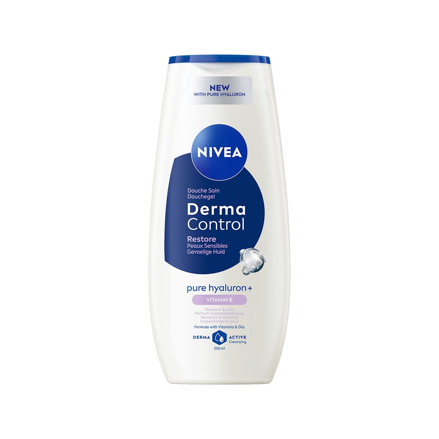 NIVEA - Gel Douche Corps Derma Control Restore - Douceur Soin - Enrichi En Acide Hyaluronique Pur Vitamine E - Parfum Hypoallergénique - pH Neutre - Peaux Sensibles - 250 ml