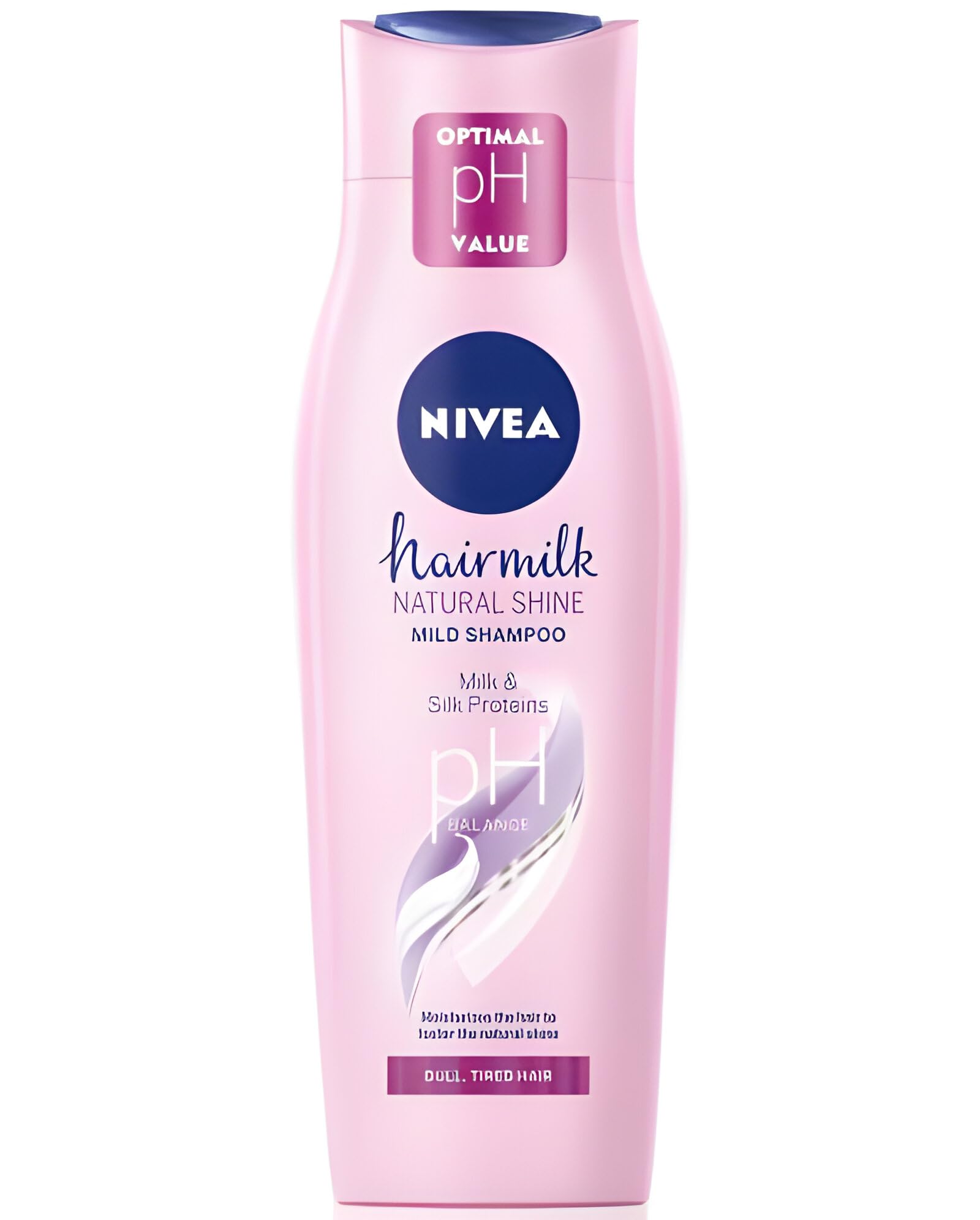 Nivea Hairmilk Natural Shine Caring Shampoo for tight shine-free hair intense moisturizing effect enriched with almond milk and magnolia extract 250 ml (pack of 4)