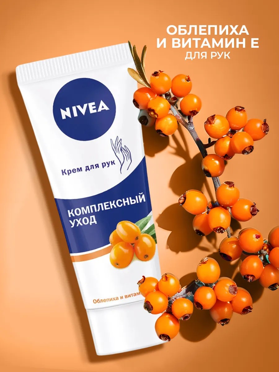 Nivea, Complex Care Hand Cream, 75 ml. Nivea's complex hand cream intensively nourishes the skin of your hands, conditions your nails, and softens cuticles. The nourishing formula with sea buckthorn and vitamin E is quickly absorbed, actively nourishing your nails and softening cuticles. Sea buckthorn and vitamin E are active natural ingredients that have toning, moisturizing, and nourishing properties. Directions: Apply daily to dry, clean skin, and after each hand wash.