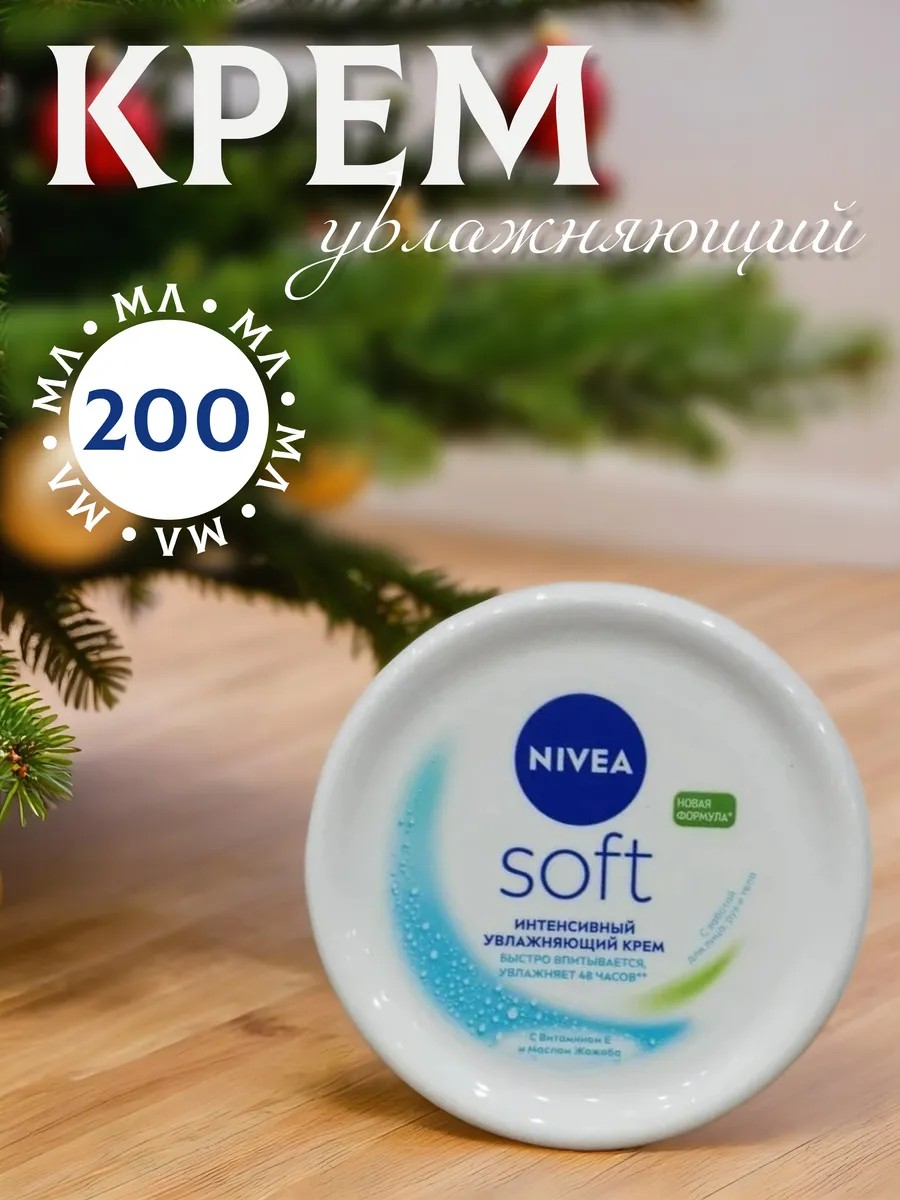 Универсальный увлажняющий крем Nivea Soft - высокоэффективный интенсивный увлажняющий крем для ежедневного использования. Легкая формула с витамином Е и маслом жожоба быстро впитывается, делая кожу невероятно мягкой и гладкой, и освежает кожу. Наслаждайтесь бодрящим ощущением мягкой и эластичной кожи. Легкий ненавязчивый аромат подойдет для всех членов семьи. Крем универсальный Soft увлажняющий, 200 мл. Этот невероятно эффективный продукт обладает питательными свойствами и подходит для разных типов кожи включая сухую. Благодаря своей текстуре крем насыщает кожу полезными свойствами, легко распределяется по коже, не оставляя жирной пленки. Крем для тела обладает ненавязчивым и легким ароматом, который подарит вам неповторимое ощущение комфорта. Основой продукта являются качественные компоненты, которые будут ухаживать за вашей кожей, делая ее невероятно мягкой и шелковистой.