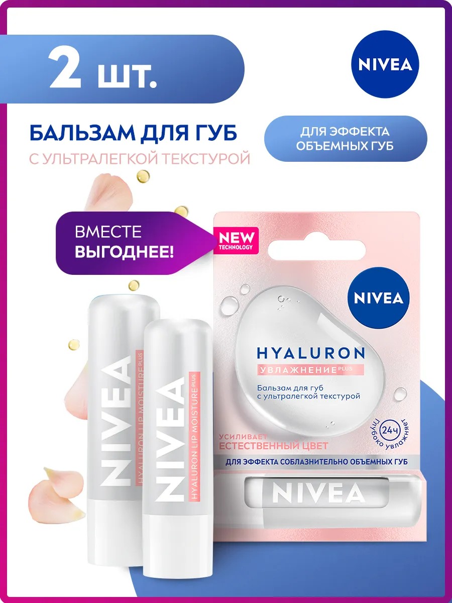 "Попробуйте бальзам для губ с ультралегкой текстурой HYALURON Увлажнение PLUS от NIVEA с гиалуроновой кислотой и ментолом. Обогащённая Гиалуроновой кислотой* и ментолом обволакивающая текстура бальзама наполняет губы влагой, подчеркивает естественный нежно-розовый цвет и придает соблазнительный объем с эффектом увеличенных губ. Мгновенно тая, гигиеническая помада дарит губам свежий, цветочно-фруктовый аромат, ухаживает и восстанавливает кожу, увлажняет 24 часа**, не оставляя ощущения липкости. Из-за ментола в составе на губах может ощущаться холодок и легкое покалывание.