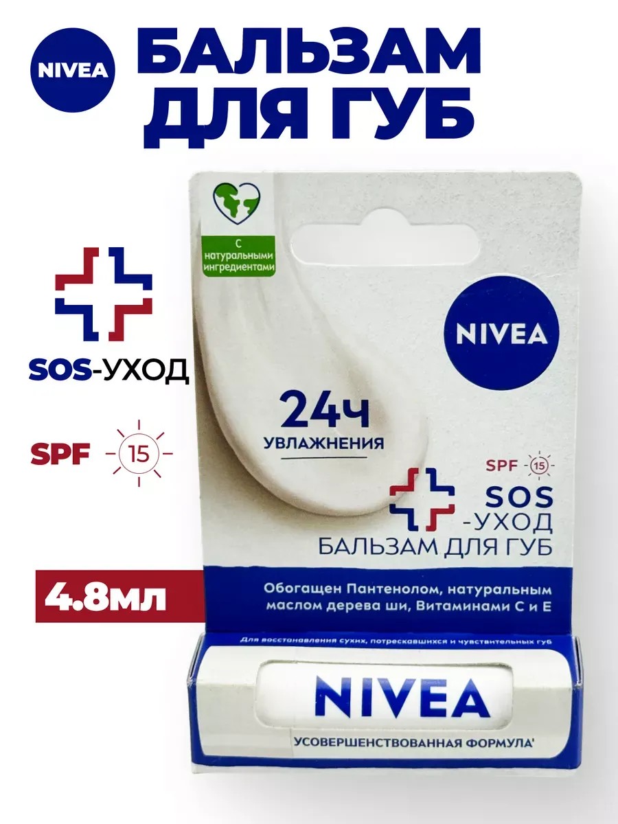 Хотите успокоить кожу Ваших губ и обеспечить им длительную защиту? Высокоэффективная формула бальзама для губ Nivea SOS-уход с витамином Е, маслами жожоба и авокадо мгновенно тает на губах, увлажняя их в течение 24 часов и предотвращая потерю влаги, сохраняя их мягкими и нежными. Ценные масла в составе бальзама широко применяются в косметических продуктах. Они быстро абсорбируются кожей, делают ее мягкой и эластичной. Кроме того, они получили высокую оценку экспертов в области ухода за кожей, благодаря высокому содержанию витаминов, питательных веществ, белков, антиоксидантов и полезных жиров. Подходит для использования в любое время года, особенно в сухой летний период или холодный зимний – для быстрого восстановления кожи губ после обветривания. Натуральные ингредиенты в составе. Применение: наносите бальзам на кожу губ тонким слоем, обновляйте бальзам на губах по мере необходимости и в зависимости от состояния сухости губ. Заметный результат при регулярном использовании. Состав: Octyldodecanol, Cera Microcristallina, Cetyl Palmitate, Ricinus Communis Seed Oil, Ethylhexyl Methoxycinnamate, Hydrogenated Polydecene, Polyglyceryl-3 Diisostearate, Myristyl Myristate, Cetearyl Alcohol, Bis-Diglyceryl Polyacyladipate-2, Butyl Methoxydibenzoylmethane, C20-40 Alkyl Stearate, Octocrylene, Copernicia Cerifera Cera, Butyrospermum Parkii Butter,Panthenol, Bisabolol, Tocopheryl Acetate, Glyceryl Glucoside, Glycerin, Aqua, Cera Alba, BHT, Benzyl Alcohol, Citral, Hexyl Cinnamal, Limonene, Geraniol, Linalool, Parfum, CI 77492.